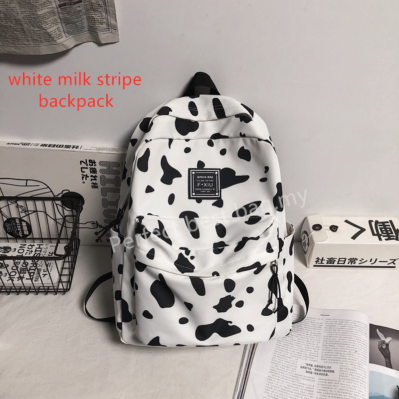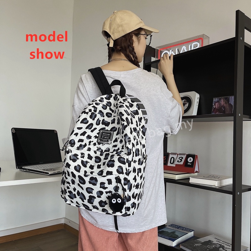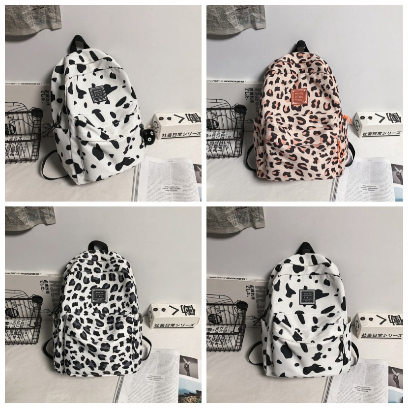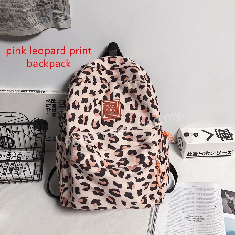 Ready Stock backpack man&woman Leopard Print backpacks Milk style schoolbags fashion bag sekolah travel bags double shoulder waterproof big capcity