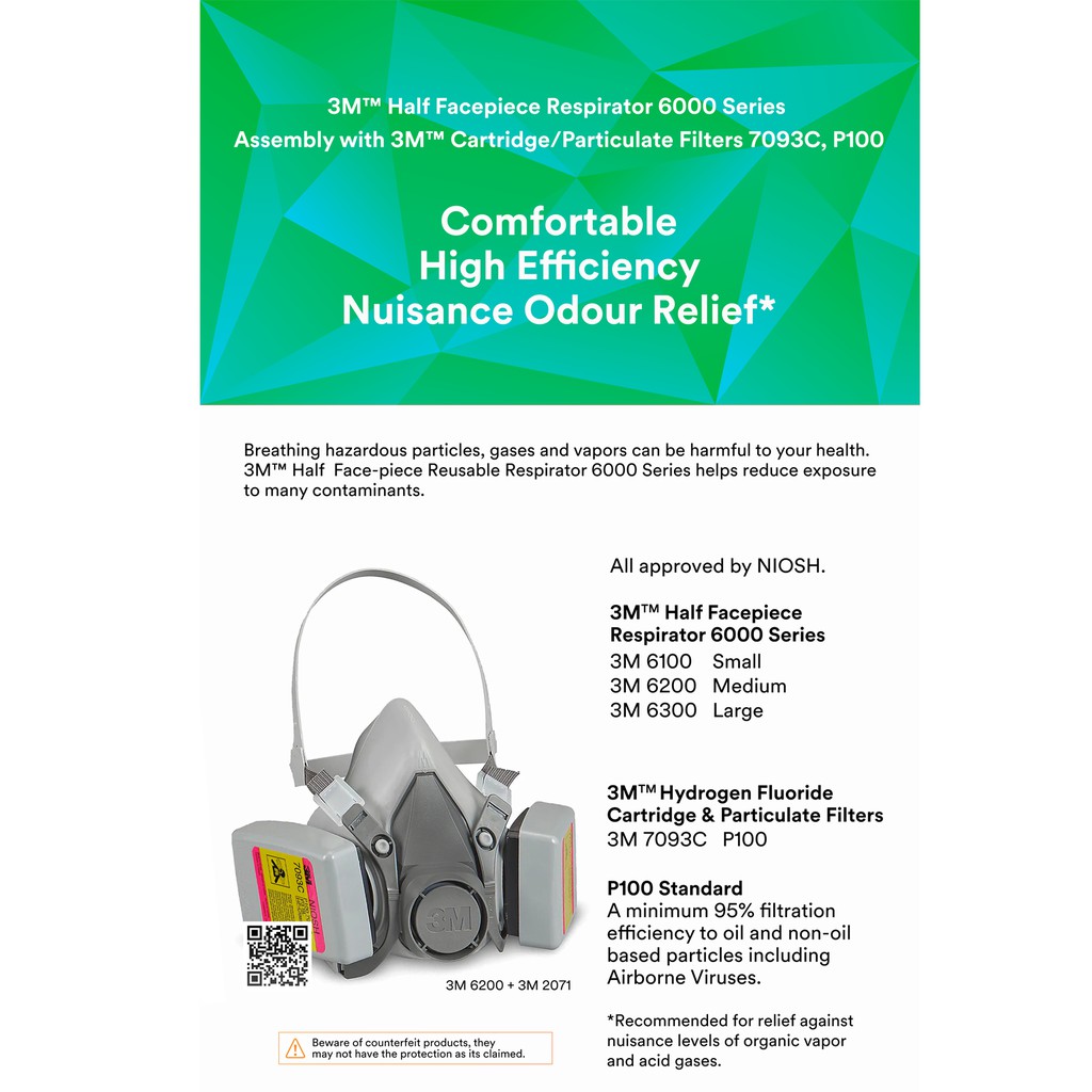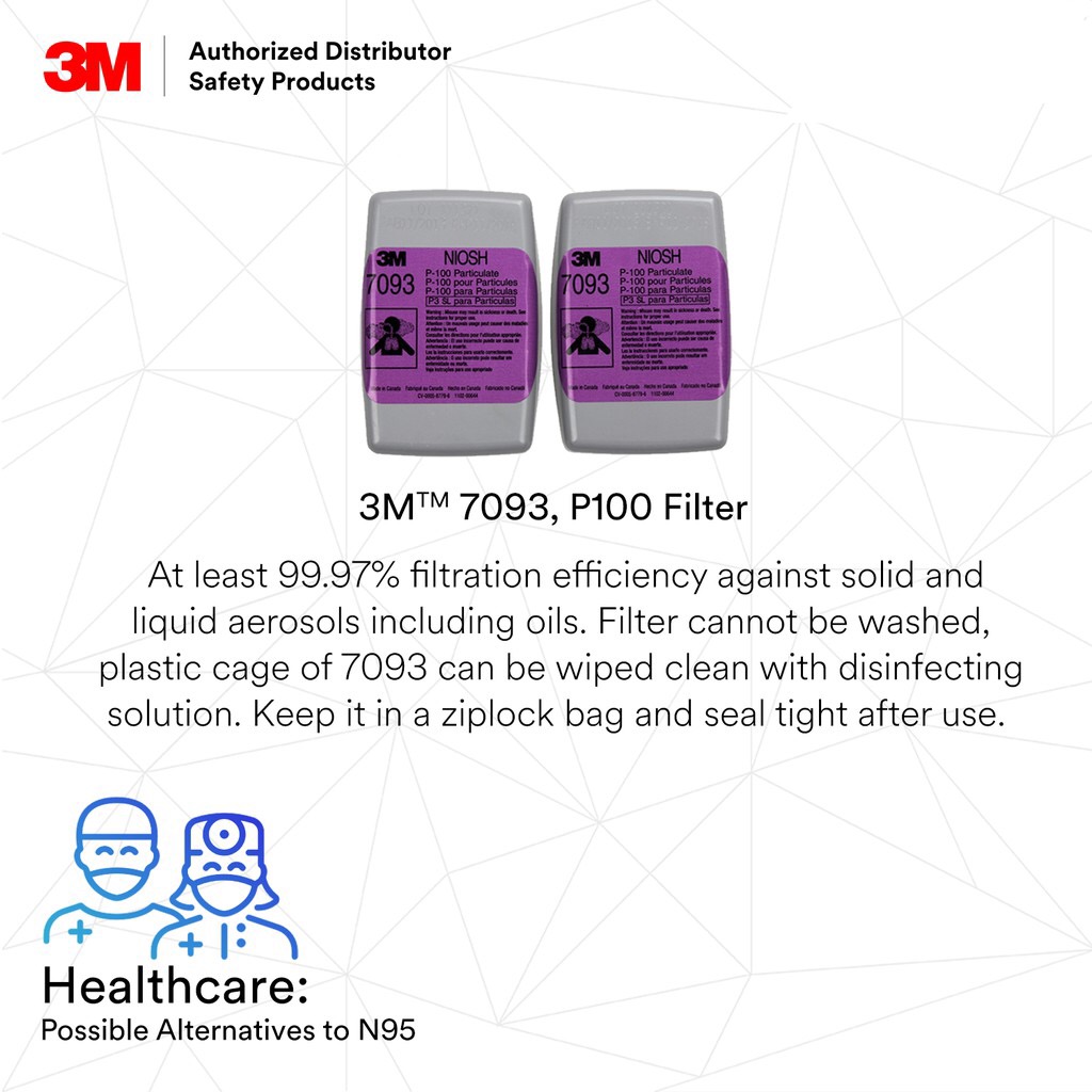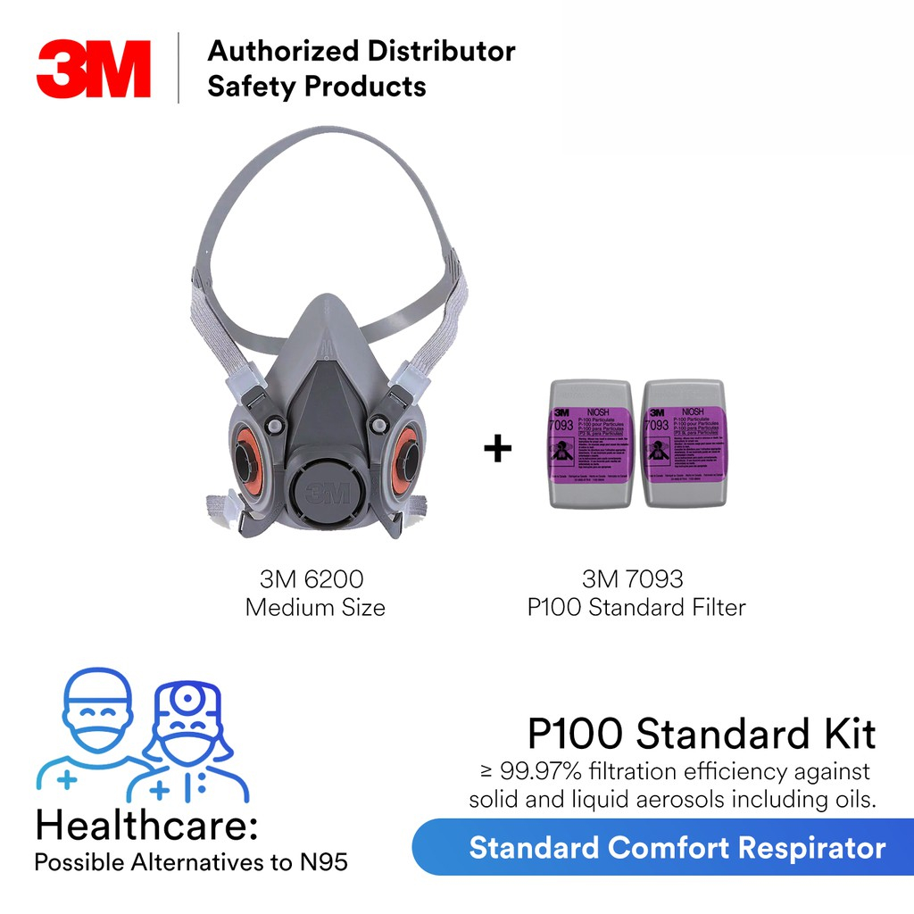 3 M P100 Standard Comfort Reusable Respirator Kit for Healthcare Workers/ 3 M 6200 + 7093 or 7093C or both [1 kit]