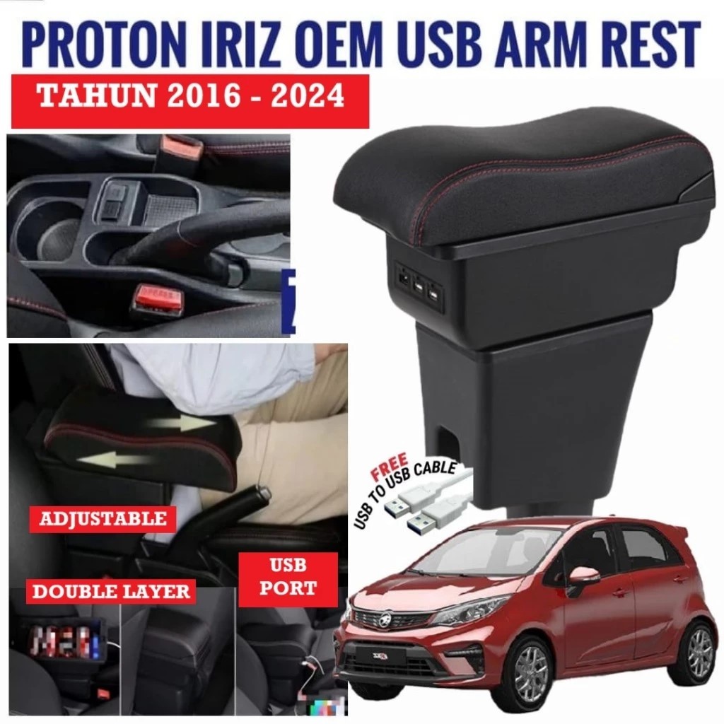 Car Armrest USB Iriz Arm Rest Console Box Seat Organizer Storage Drink Cup Holder Kecik Kereta