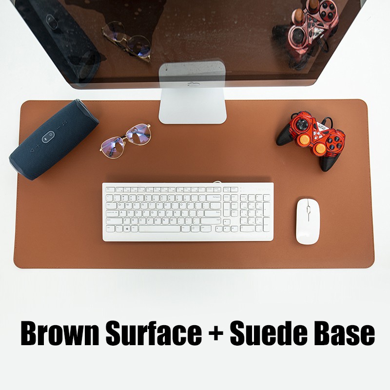 (Ready Stock)Stitched Large Leather Mousepad Keyboard Mat with Anti-slip Suede Backing Smooth Mouse Pad of Pu Leather Waterproof Desk Mat