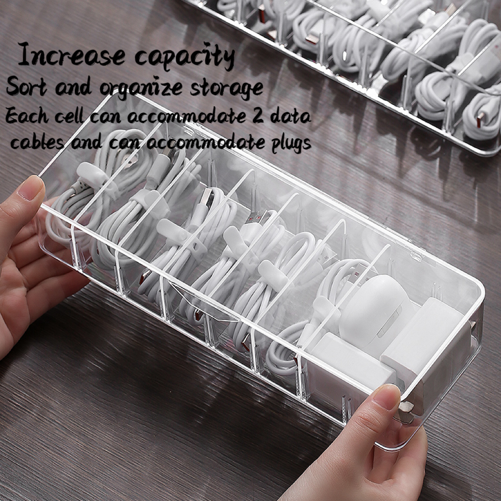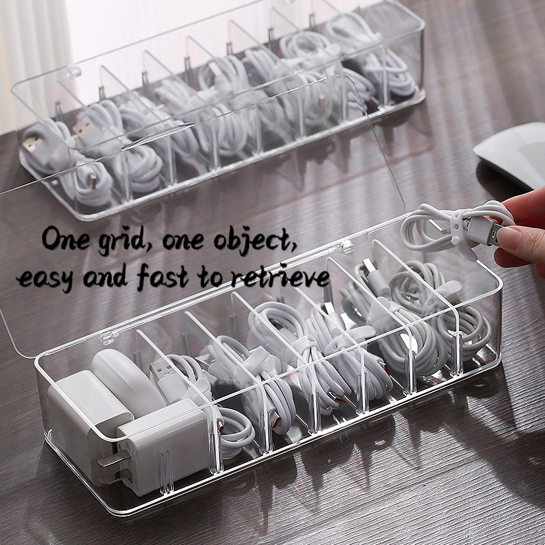 Detachable Partition Desktop Cable Organizer Data Charging Cable Earphone Storage Box Transparent Multifunctional Drawer Cable Storage Box