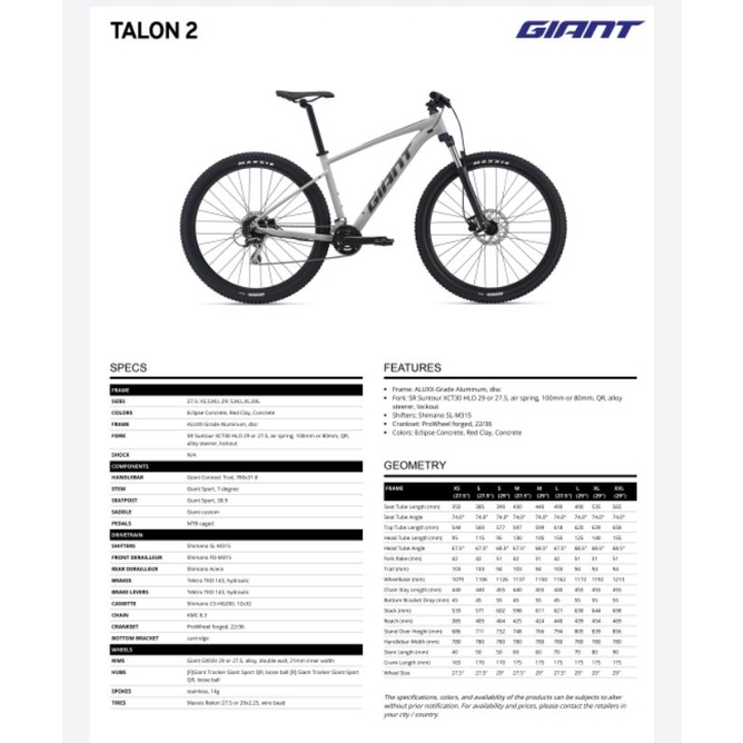 GIANT BICYCLE - GIANT TALON 2 - FREE SHIPPING - MTB 27.5 / 29 - Ready Stock