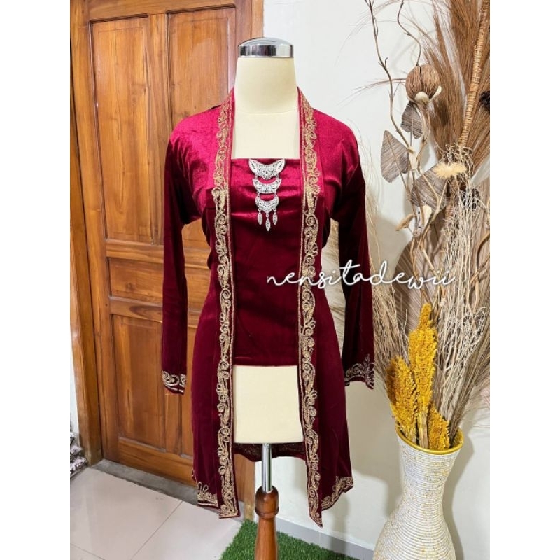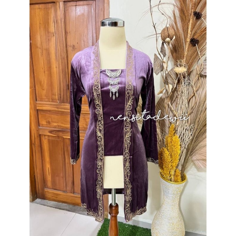 Kutubaru Velvet Kebaya, Long - Cornelia Embroidery Kebaya Kebaya Embroidery
