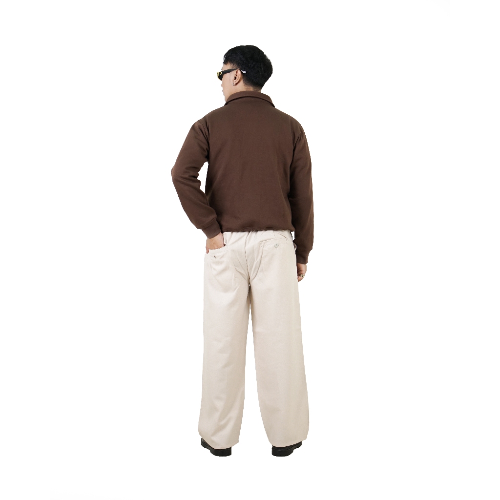 JINSYOU - Wide Pants Cream Loose Relaxed Elastic Waist
