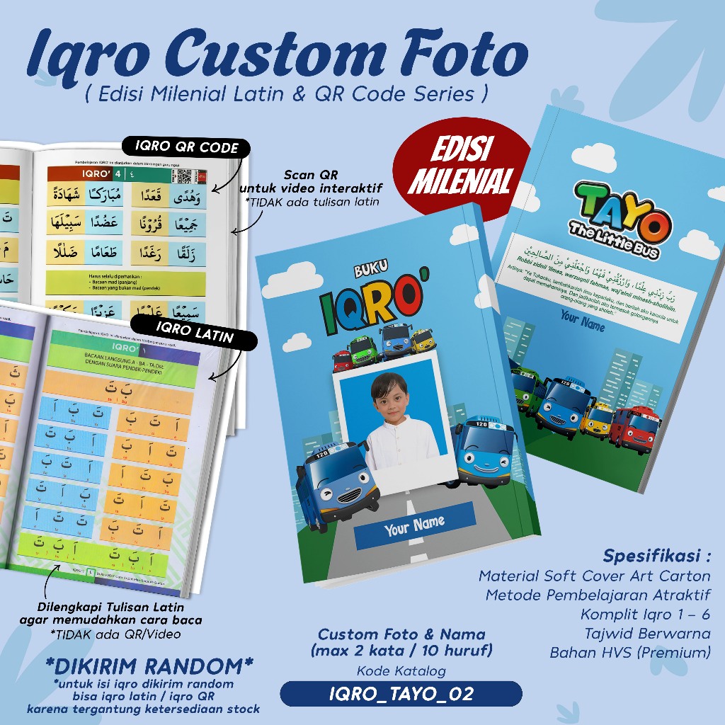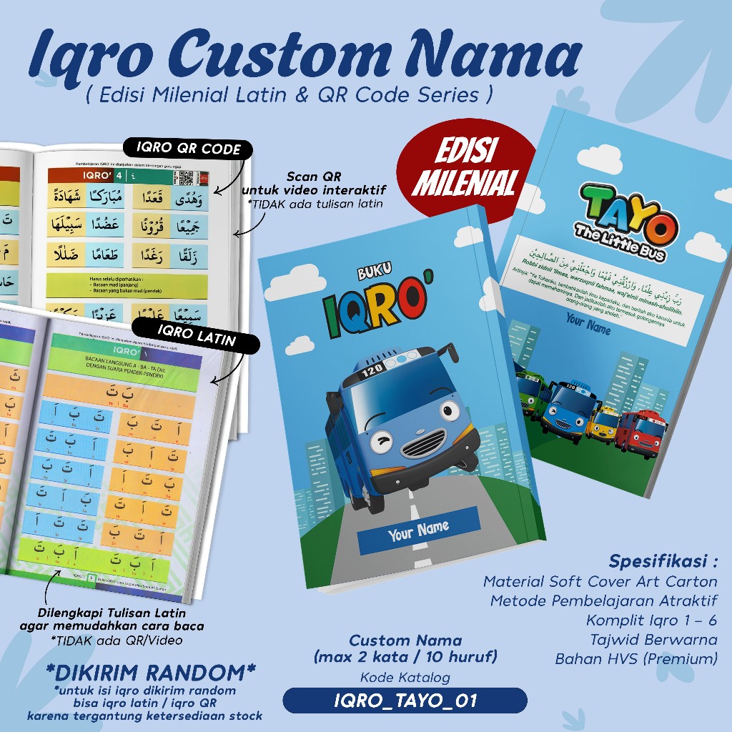 IQRO MILLENNIAL CHILDREN CUSTOM TAYO BUS CARTOON DESIGN IQRO MILLENNIAL BOOK/ COLORED TAJWID COMPLETE SOFTCOVER IQRO 1 - 6 TAYO CHARACTERS