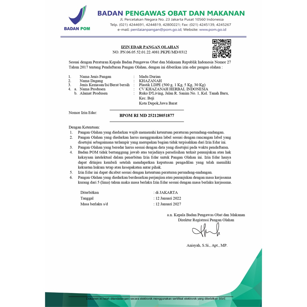 Khafi/khazanah Durian Honey Net 1kg