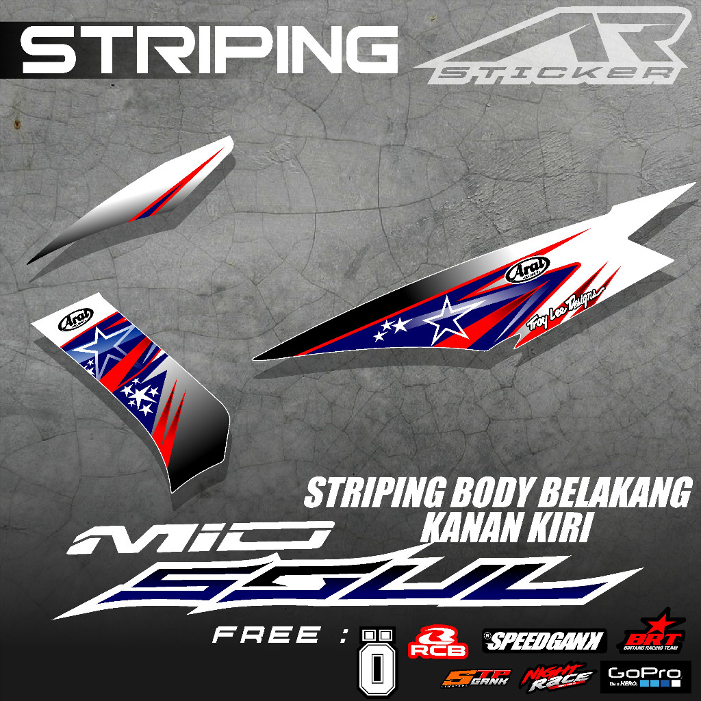 Old Mio Soul Carburetor Striping Stickers, Yamaha Mio Soul Style Racing Sticker Variations, Arai Hayden Motif