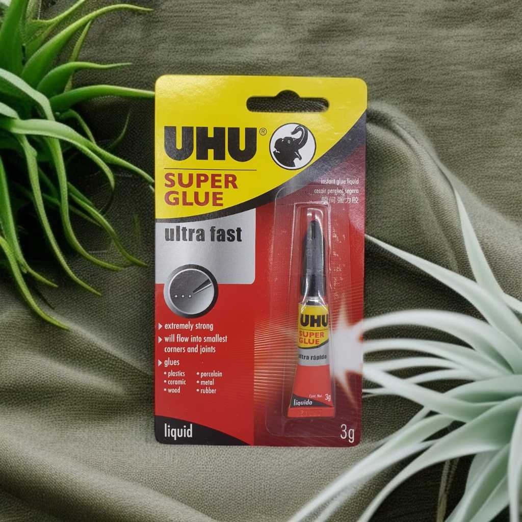 SUPER GLUE[UHU]ULTRA FAST(EXTREMELY STRONG/WILL FLOW INTO SMALLEST CORNERS AND JOINTS/INSTANT GLUE LIQUID)3G