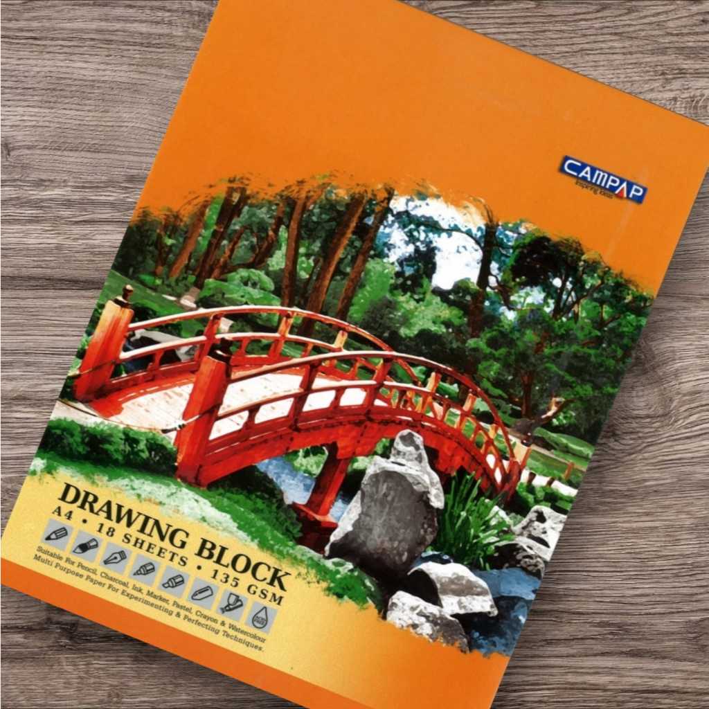 DRAWING BOOK(CAMPAP)FLIP TOP OPEN(SIZE: A4/BLANK PAGES/18 SHEETS/ACID FREE/135 Gsm)