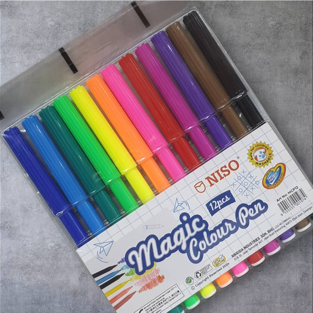 COLOUR PENS[NISO]/12 COLOUR MARKER PENS/WASHABLE/Bright & Smooth for Creative Use