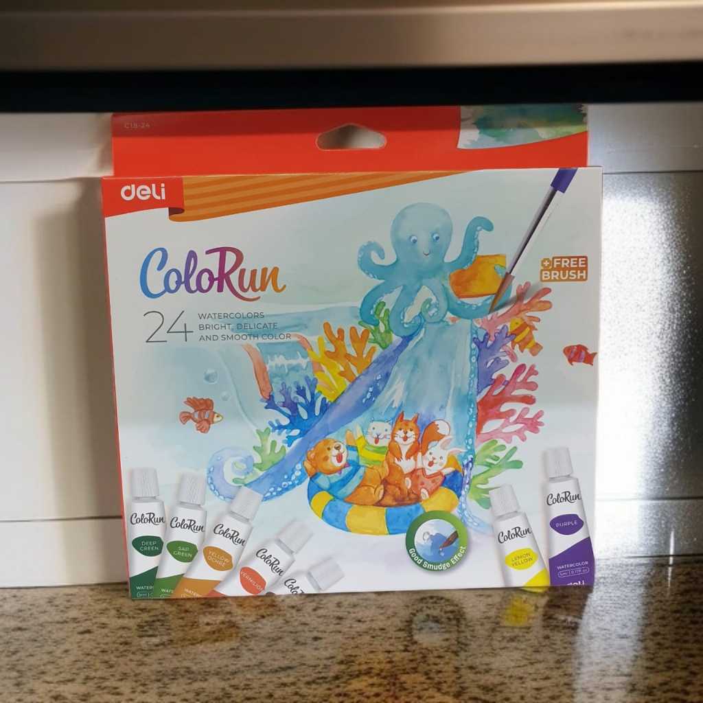 WATER COLOUR[DELI]/24 WATERCOLOURS BRIGHT,DELICATE&SMOOTH/COLORUN/BRUSH INCLUDED