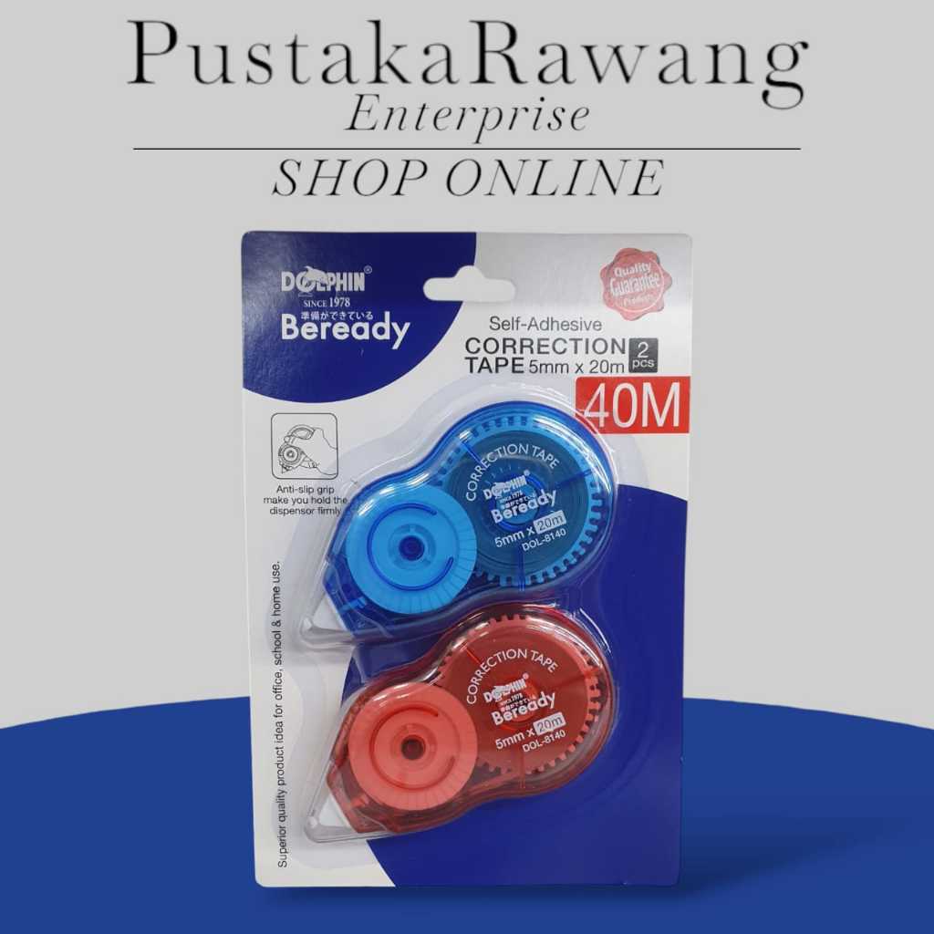 CORRECTION TAPE(DOLPHIN)VALUE PACK 2 IN 1/SELF-ADHESIVE /5MM X 24MM X 2(STRONG ADHESION/SMOOTH USE/SMOOTH ROLLER)