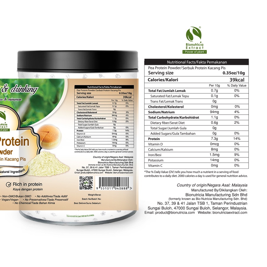 Bionutricia Pea Protein Powder | Plant Protein | Halal