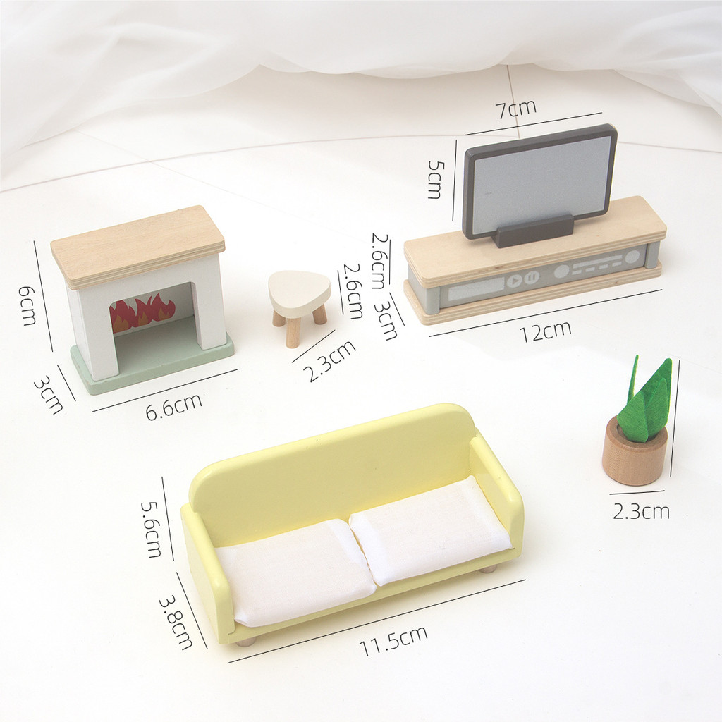 Wooden Mini Small Furniture Room Indoor Bedroom Bathroom Play House Simulation Doll House Young Children Kitchen Toys