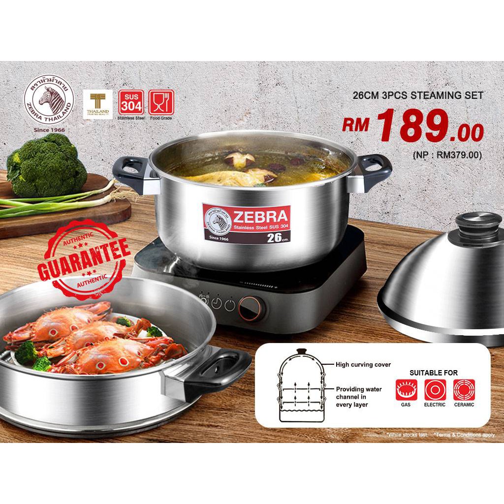 (100% ORIGINAL) ZEBRA 26cm 3 Pcs Steaming Set
