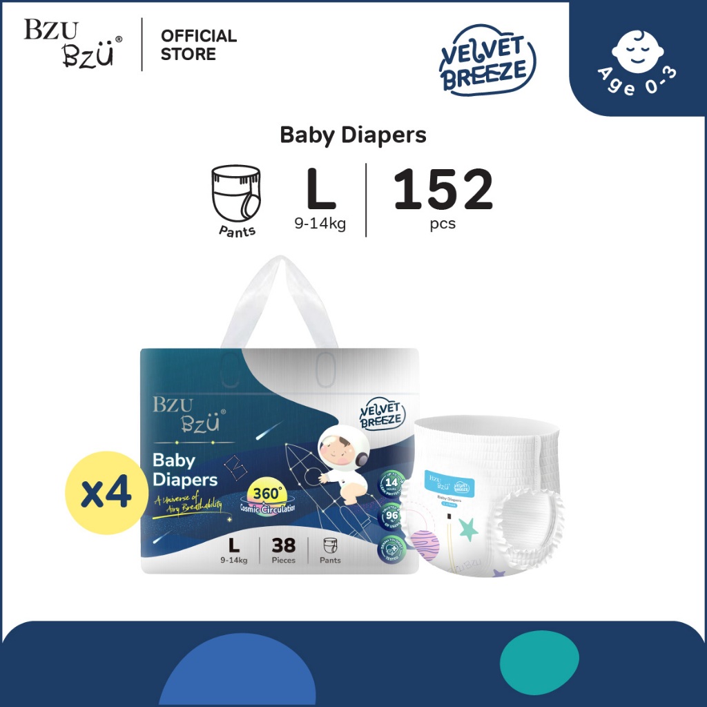 BZU BZU VelvetBreeze Baby Diapers Pants Carton Deals (4 Packs)