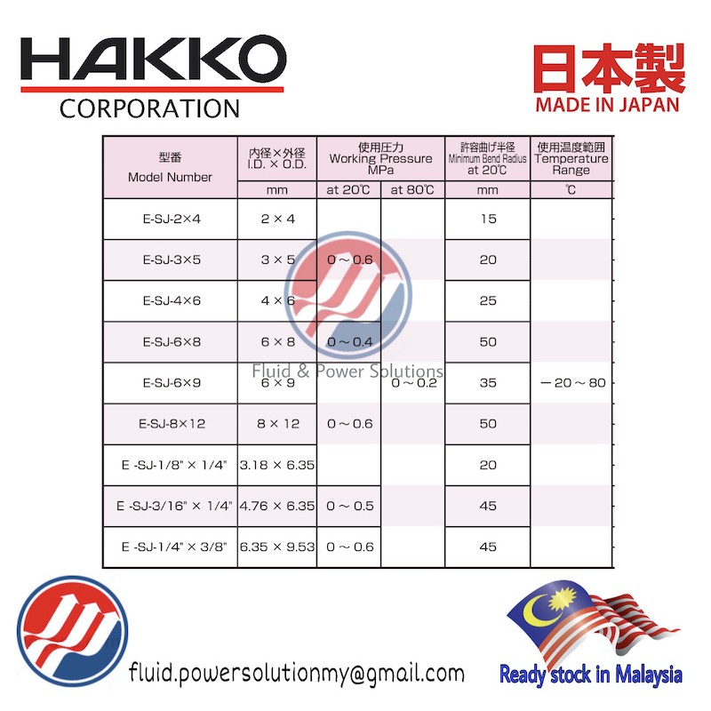 "Japan" Hakko Eightron E-SJ series 2x4mm, 4x6mm, 6x8mm ETFE Fluorine Hose, "Made In Japan" Teflon Tube,Nylon Tube.