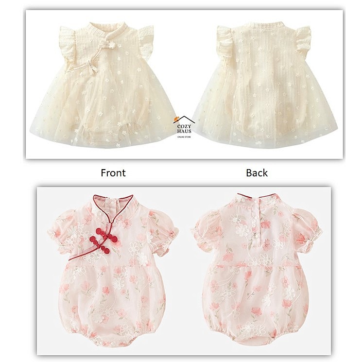 Ready Stock Baby Toddler Girl Cotton Cheongsam Qipao Romper CNY Onesie (0-24mo) 女童中国风旗袍爬服哈衣
