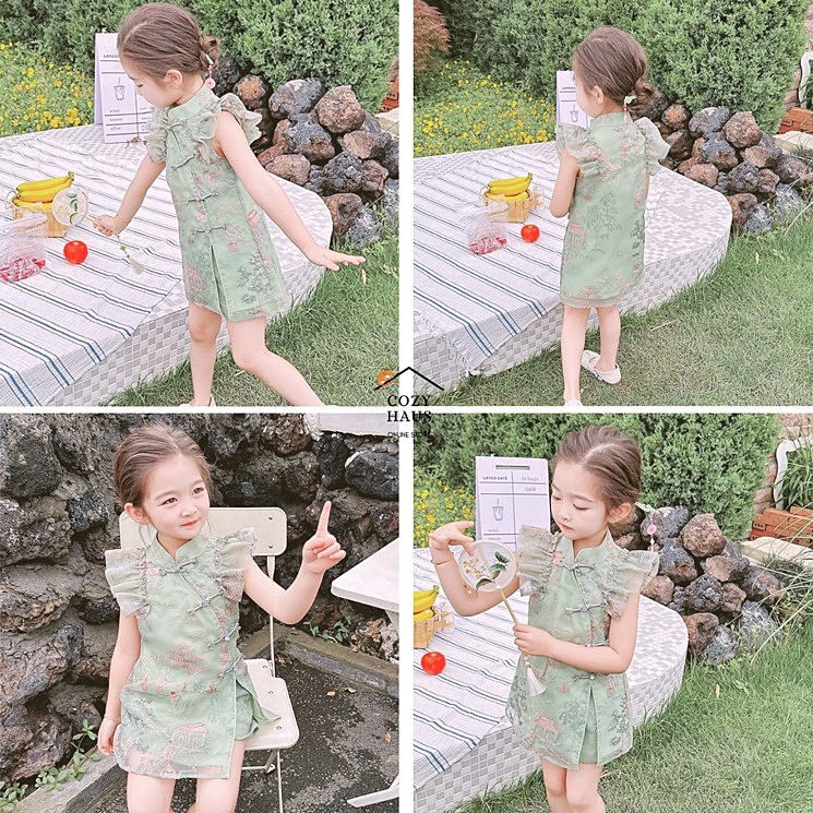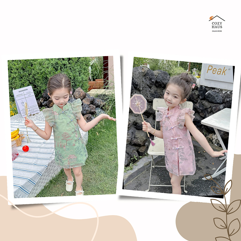 Cozyhaus Kid Girl Cheongsam Qipao Chinese New Year CNY Dress Sets Ready Stock (2-7years) 女童时髦改良旗袍裙套装