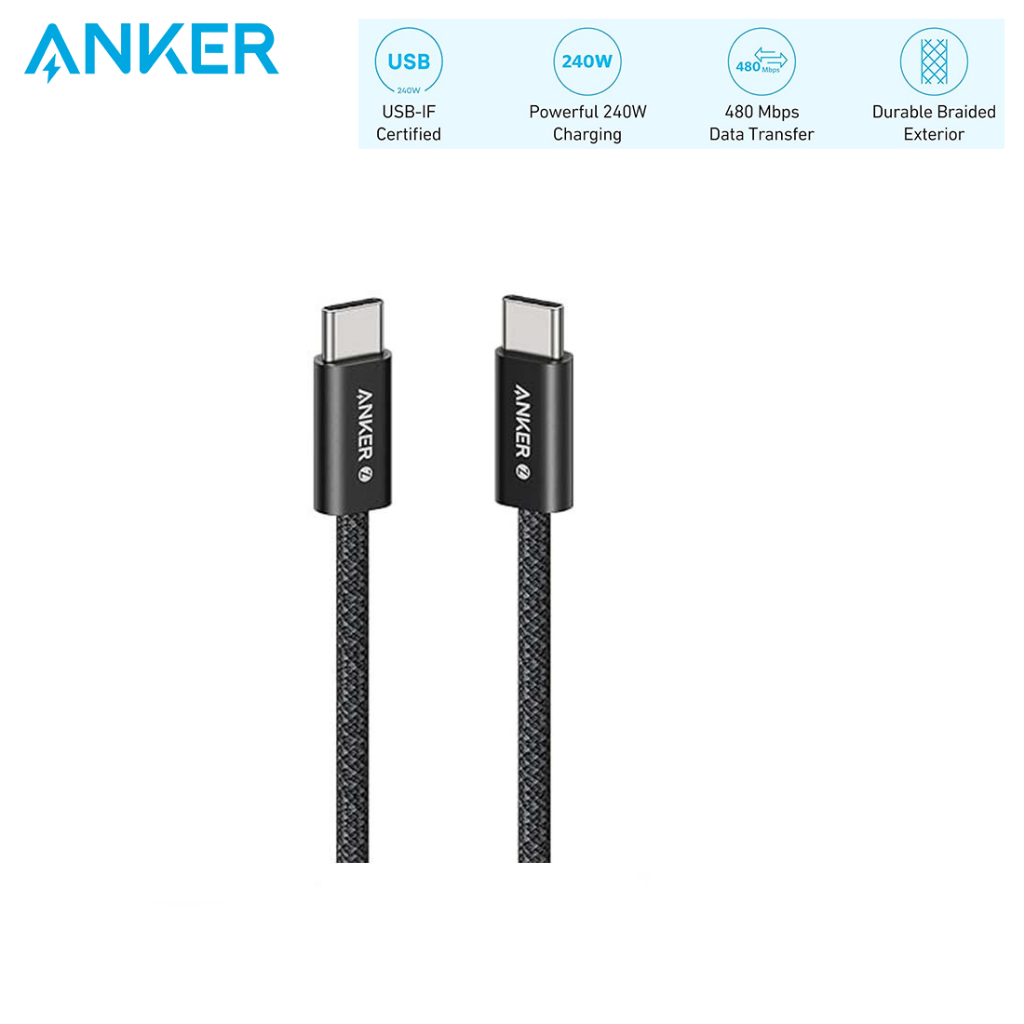Fast Charging Cable Anker Zolo A8060 240W USB C to USB C With Braided and Dirt-Free, Slim Connector, for iP 16 Series