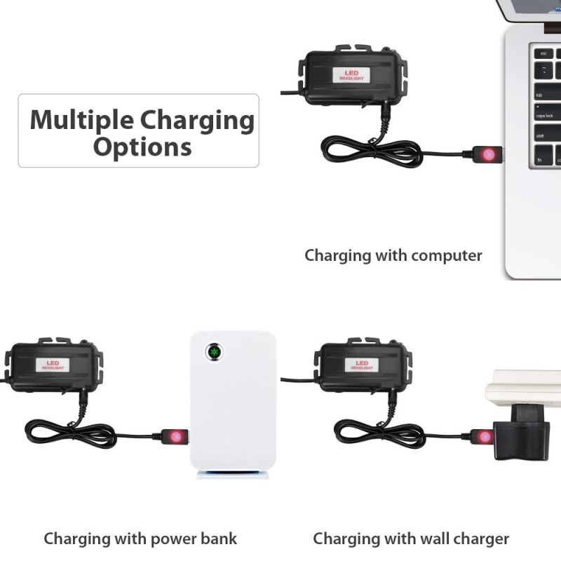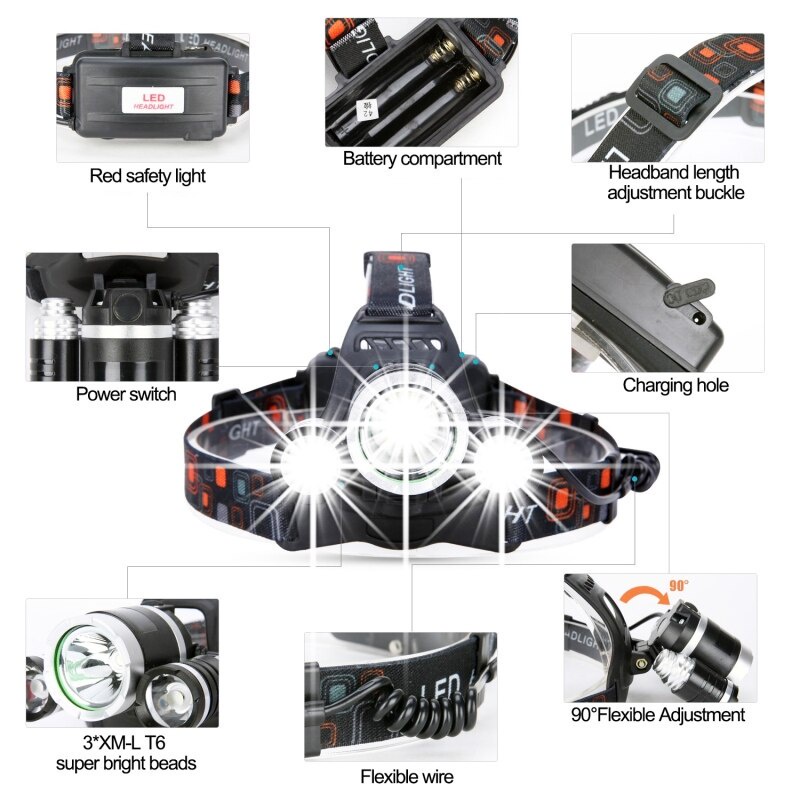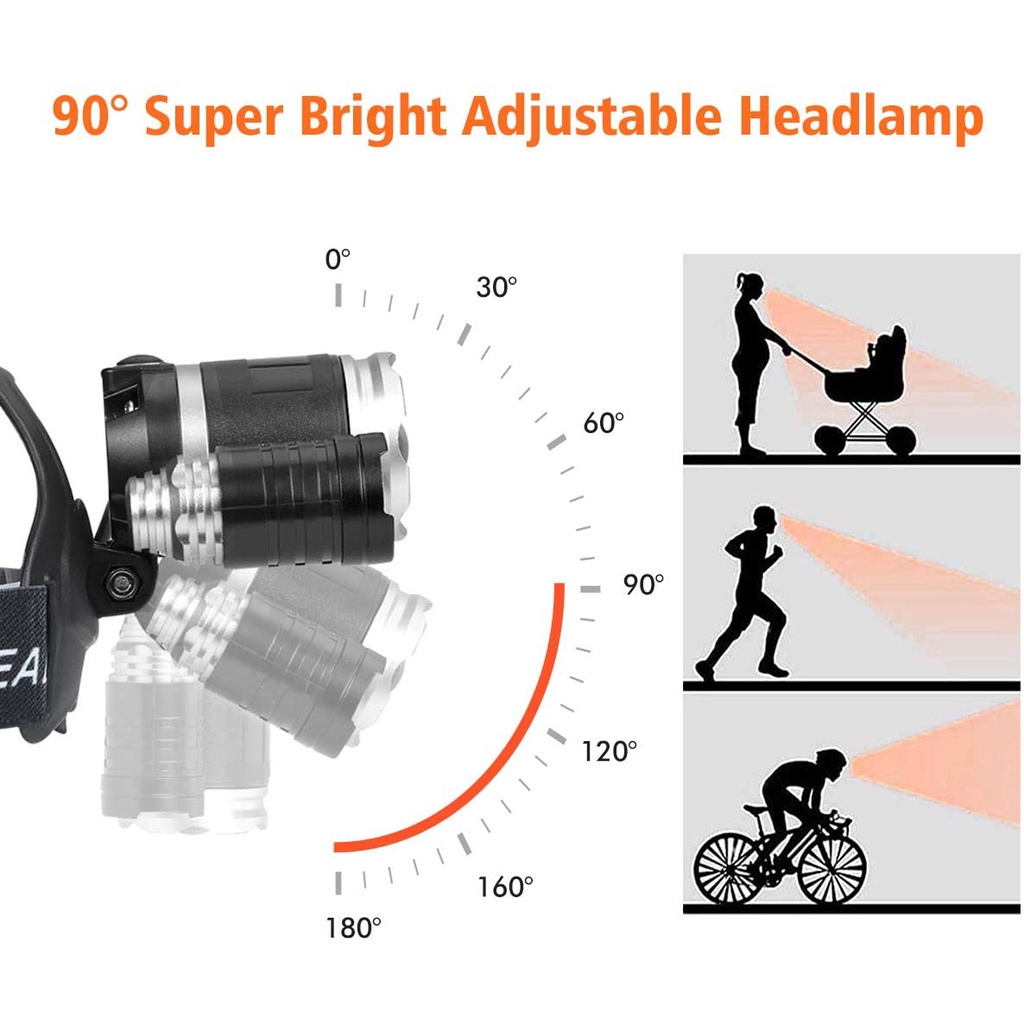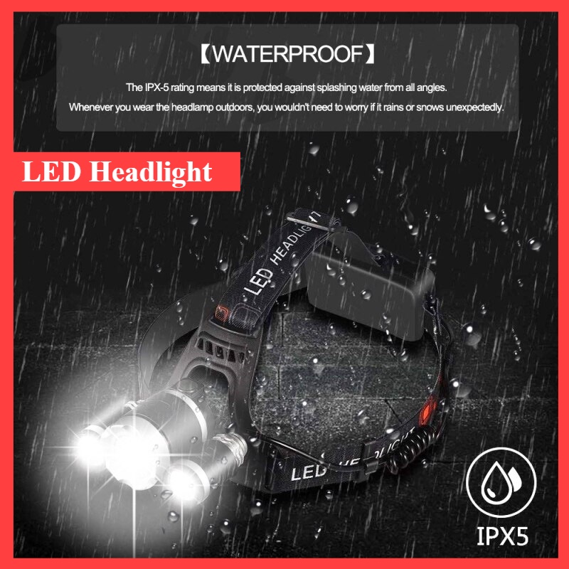 [Fast Shipping] LED Headlamp Brightest 35000LM USB DC Charging Headlight Waterproof 4 Modes Lampu Kepala Terang