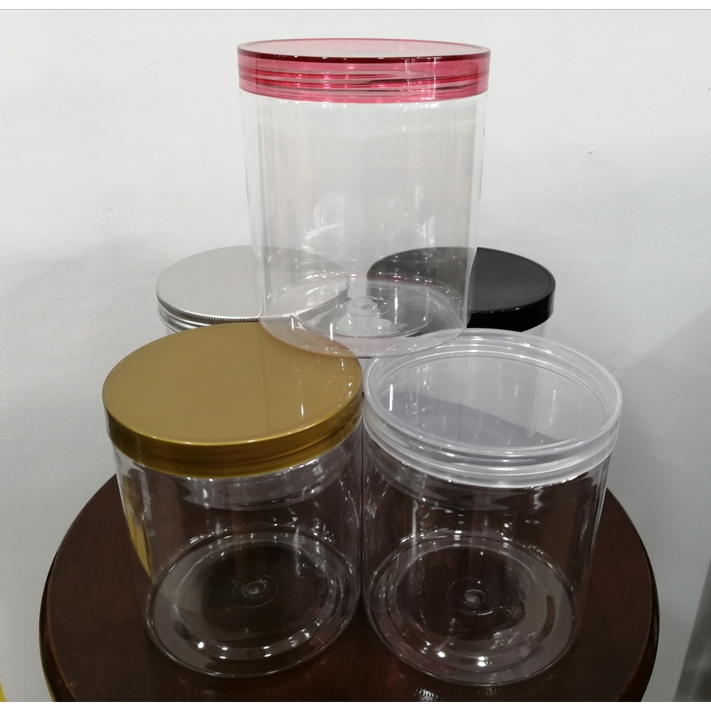 Plastic Round Jar and Cap Alum Gold, Silver/Plastic Gold, Transparent Container (HQ500RSJ10/HQ750RSJ10/HQ900RSJ10)