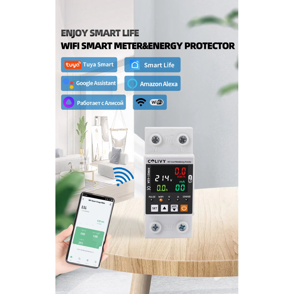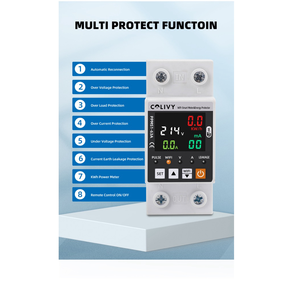 63A😱 TUYA Smart WiFi Energy Meter Circuit Breaker MCB Electricity Prepaid Room Rental Wifi Sub Meter