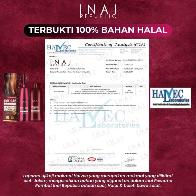 INAI PEWARNA RAMBUT HALAL -(8 WARNA PREMIUM ) HENNA DYE HAIR WITH ALOEVERA AND OLIVE OIL