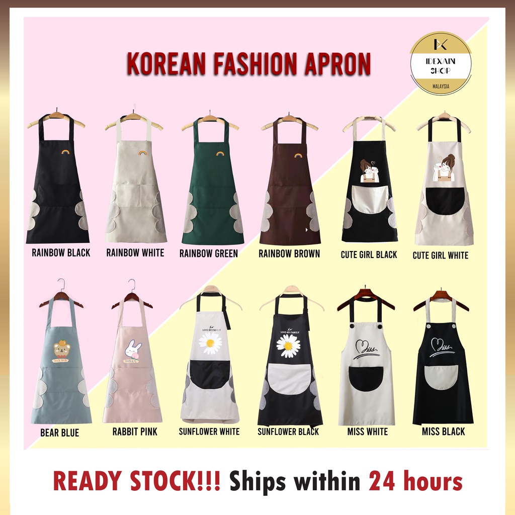 [READY STOCK] Cute Korean Style Woma Kitchen Apron Hand Wiping Pocket Chef BBQ Cooking Baking Apron 厨房 烘焙 烧烤 厨师 韩风 女性 围裙