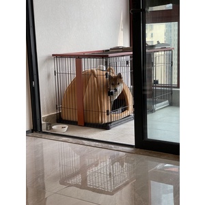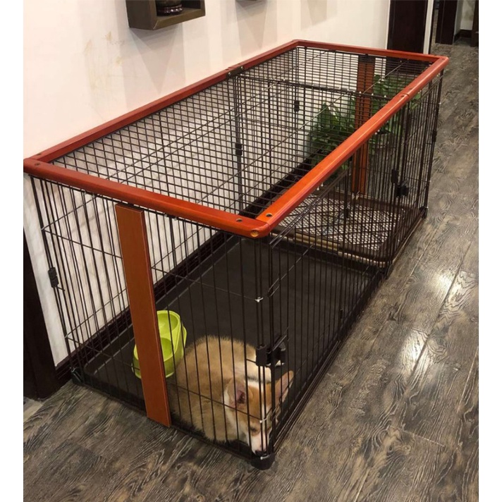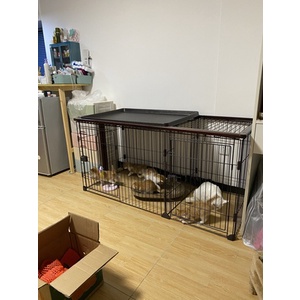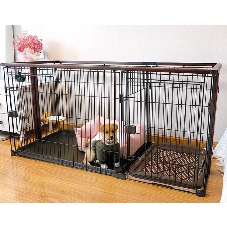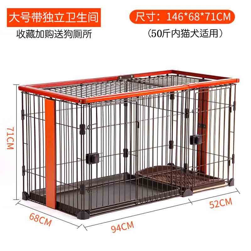 Dog Crates Cat Cage Kennel With Toilet Pet Indoor Fence Two-bedroom Anjing Kucing Pagar Rumah House (Size : Large)