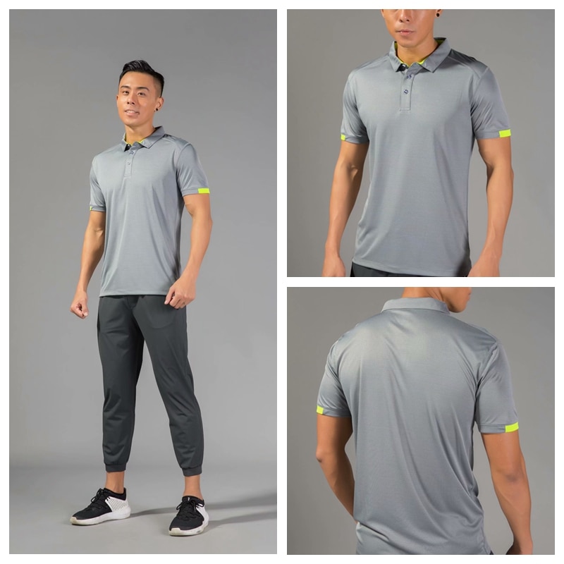 Golf Shirt Polo Short Sleeve Running Men Quick Dry Breathable T-Shirts Slim Fit Tops Tees Sport Fitness Gym
