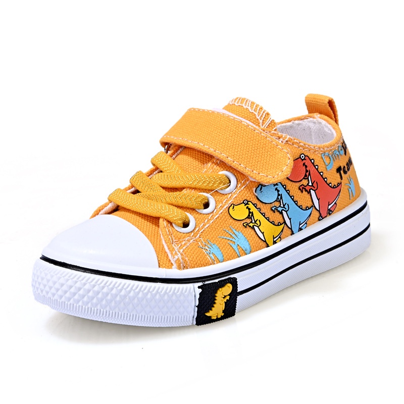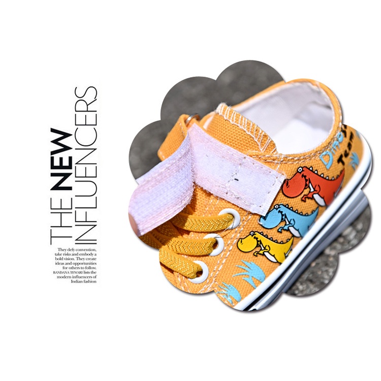 Children Canvas Shoes for Boys Summer Breathable Versatile Kids Fashion School Casual Shoes Girls Cartoon Dinosaur Hook & Loop