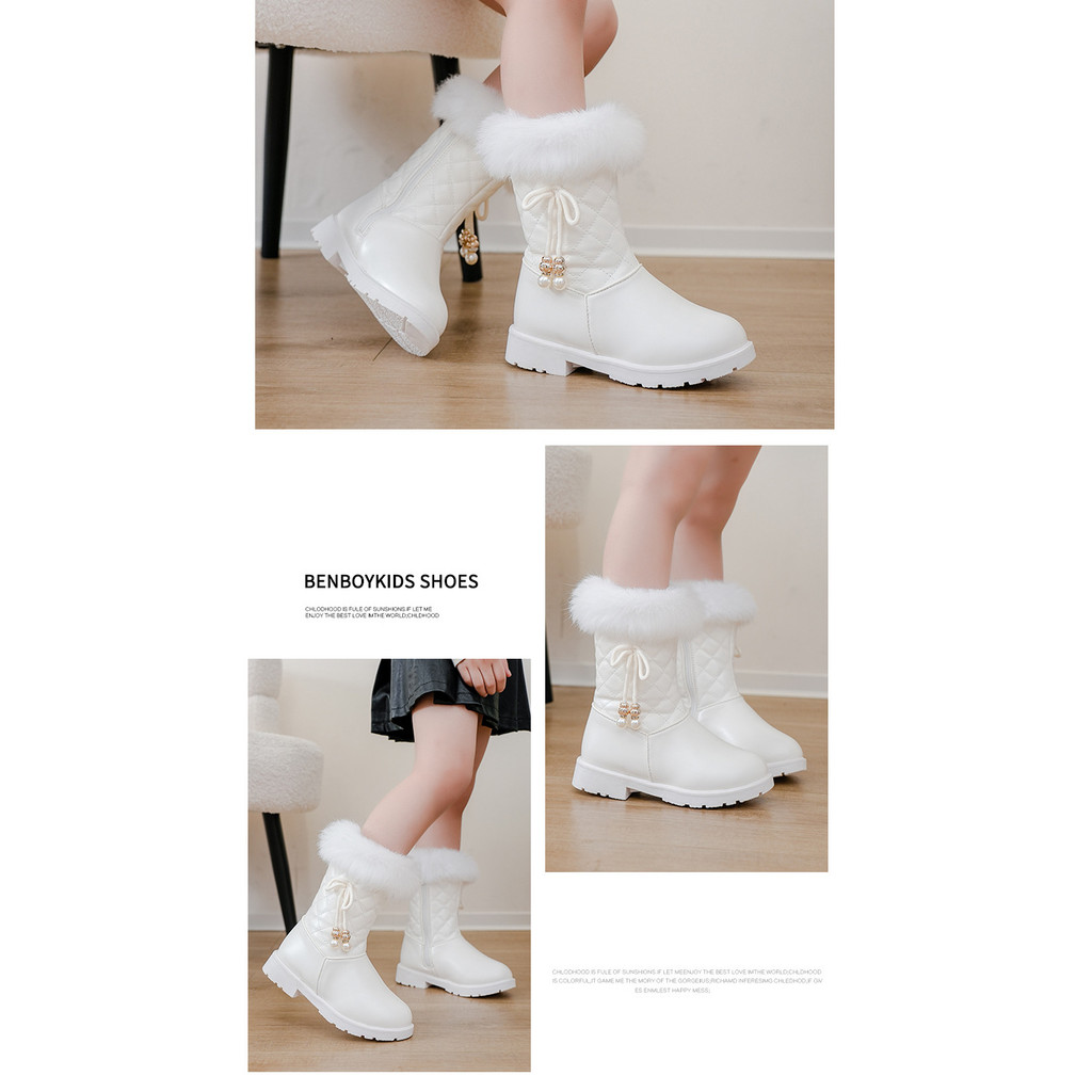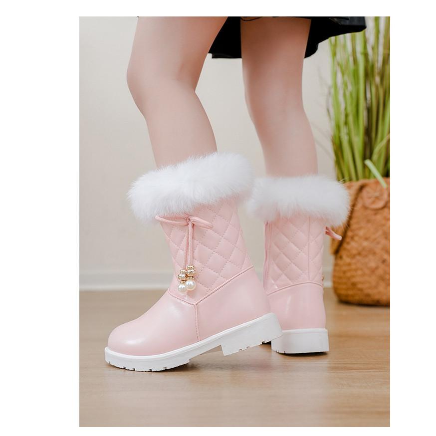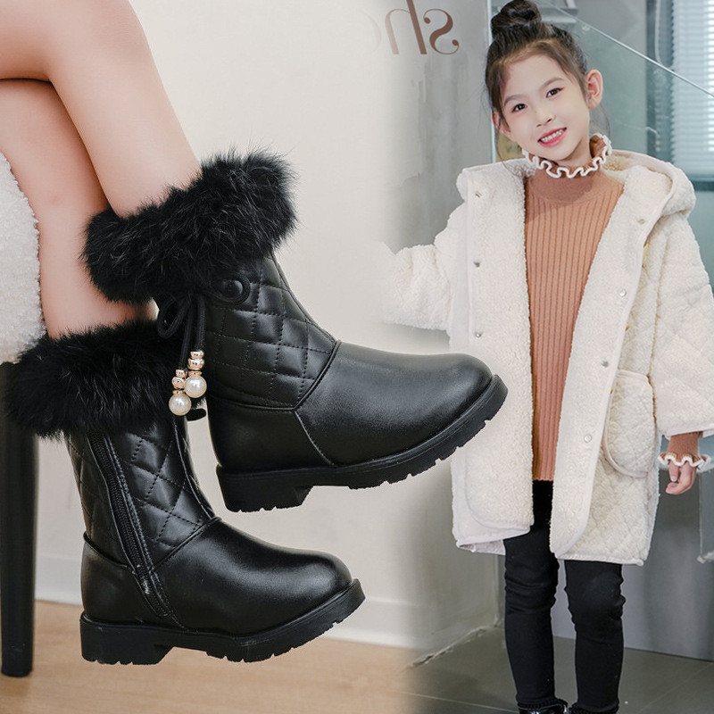 Girls Princess Boots Warm Shoes for Winter Kids Long Boots with Fur 2025 New Fashion Sweet Girls Leather Snow Boots with Bow