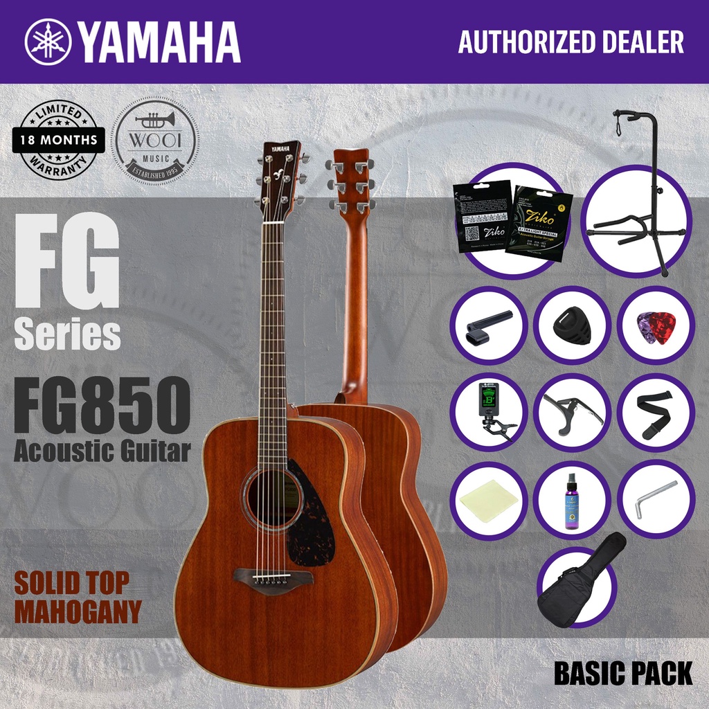 Yamaha FG850 FG Series Mahogany Solid Top Acoustic Guitar 41"