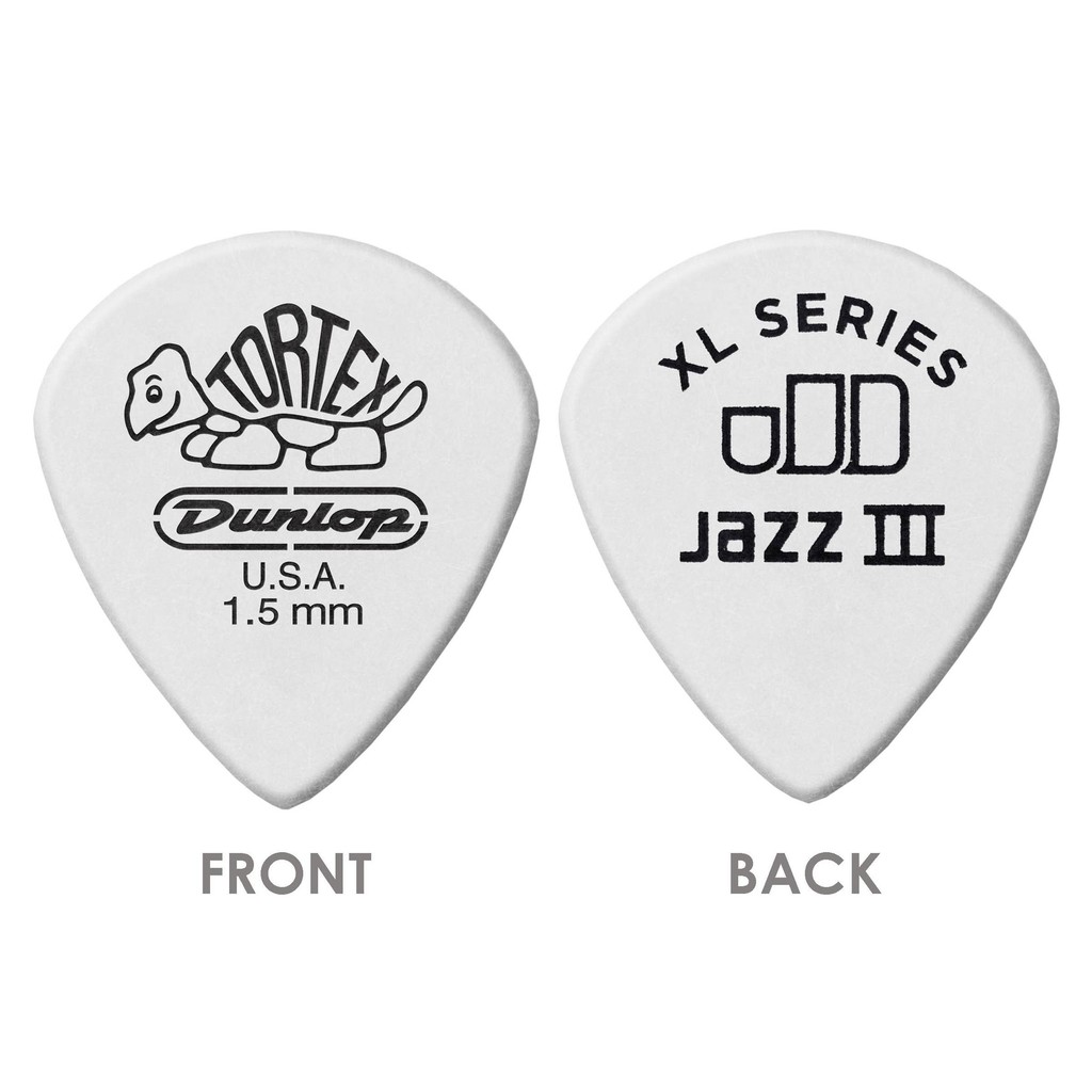 Jim Dunlop Tortex Jazz III XL Guitar Picks - Made In USA (1pc / 3pcs / 6pcs)