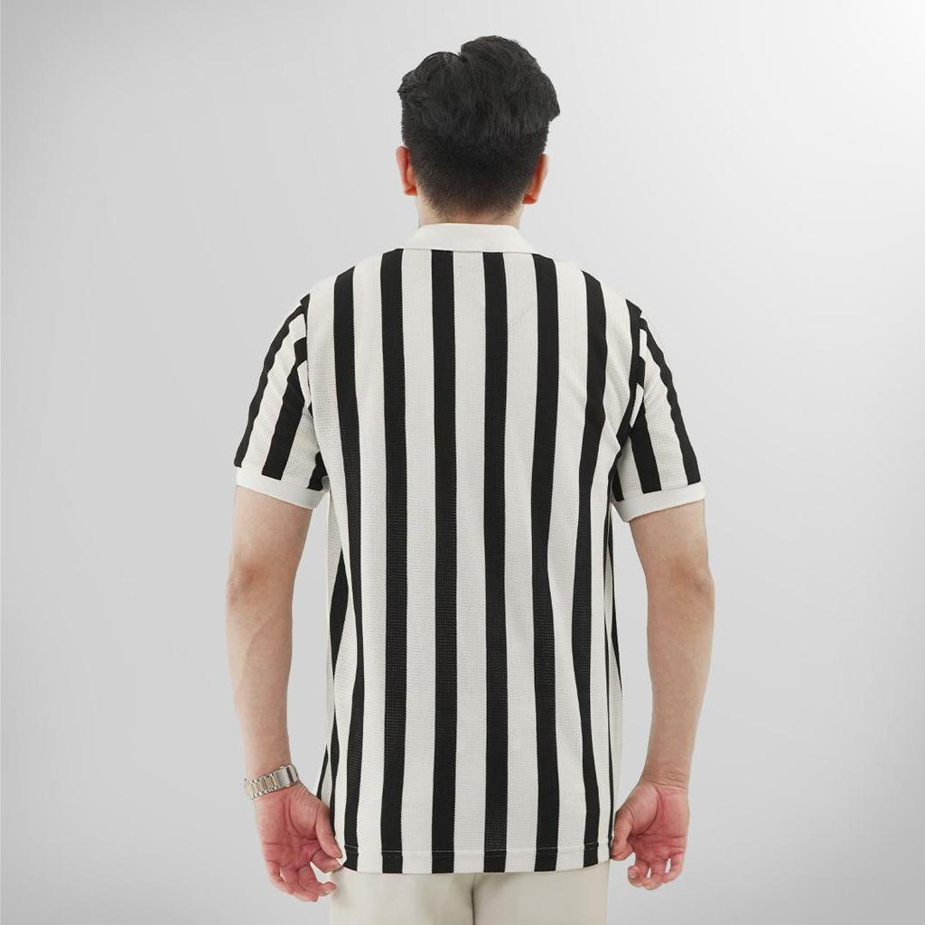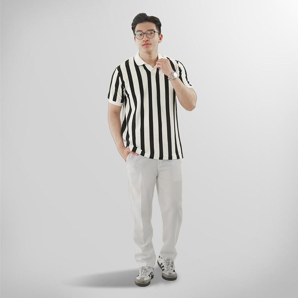 KATUN MATSUDA Tateyama Offwhite-Black T-Shirt Men's Striped Cotton Shirt Polo Shirt