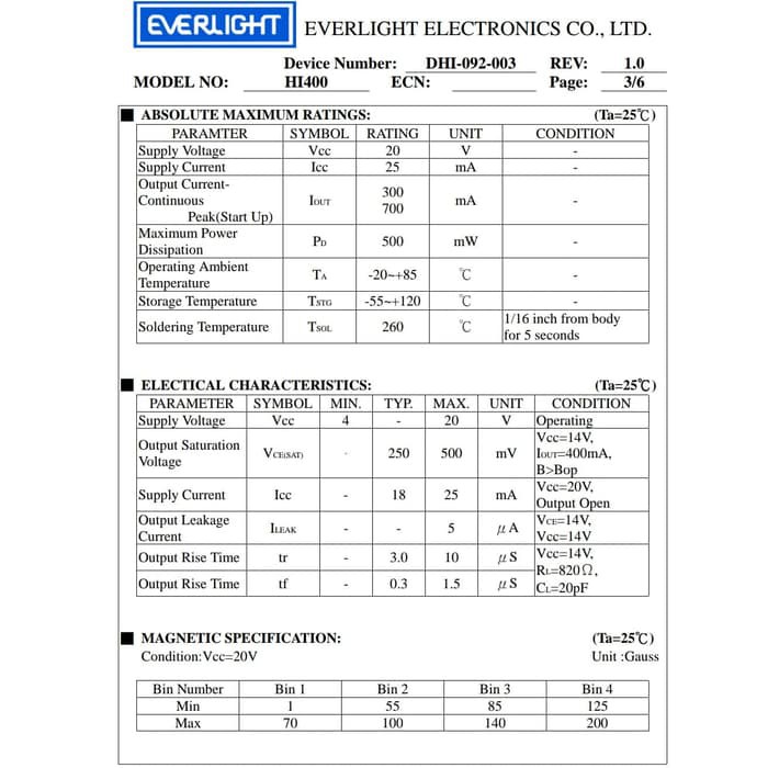 Magnetic Hall Effect Sensor HI400
