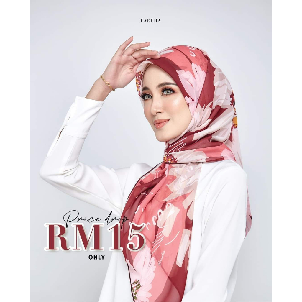 FAREHA BAK SE Printed Scarf Bawal Anti Kedut Korean Srikandi Raya Chiffon Bercorak - Tun Teja Tun Fatimah Saadong