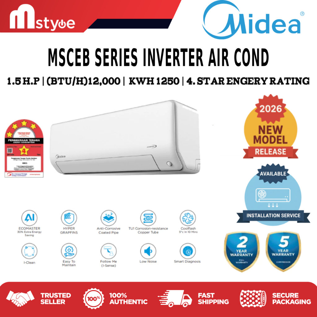 [Installation] Midea 2026 Smart Inverter Aircond R32 - Siri MSCEB/MSNEB/MSAI (WIFI + Ionizer)