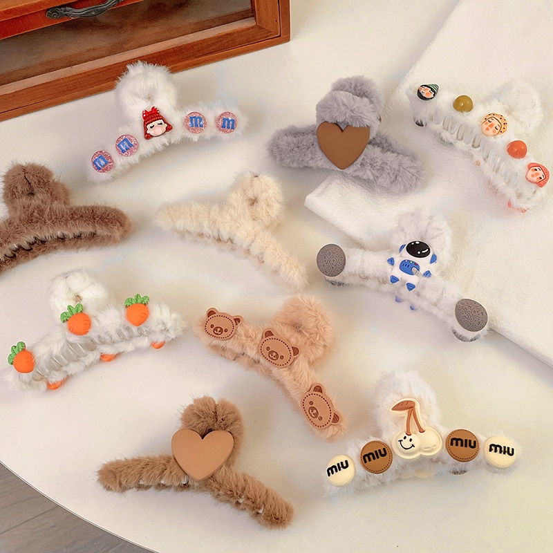 Korean Fashion Plush Clip Large Hair Claw Cute Hair Clip Female Clip Headdress