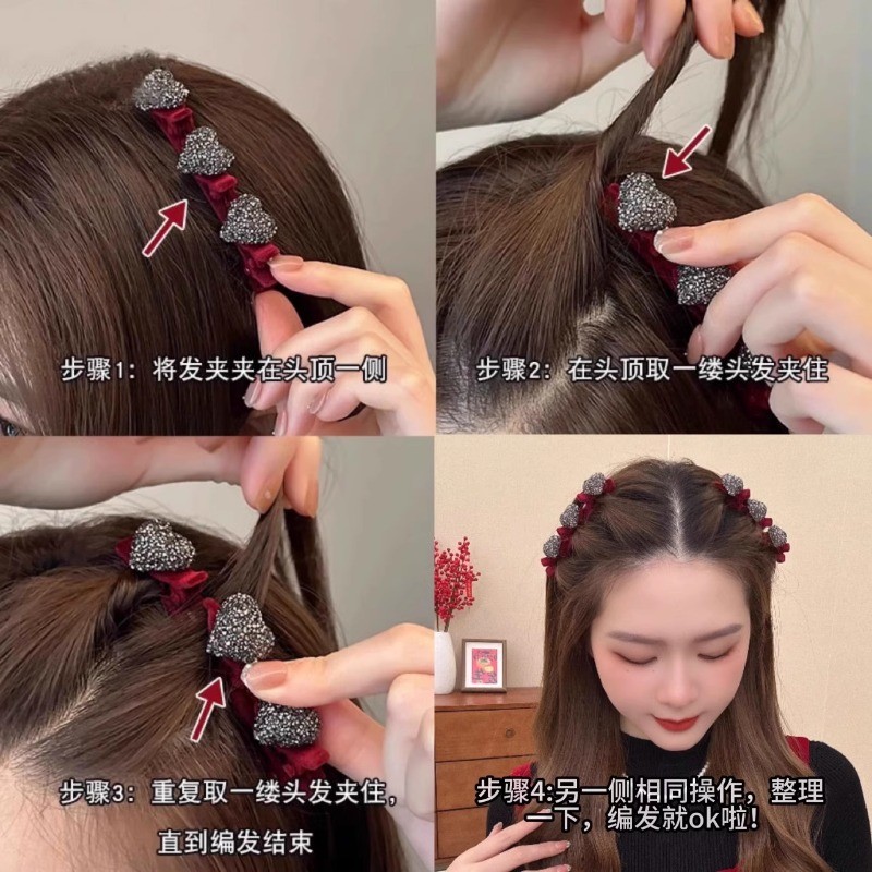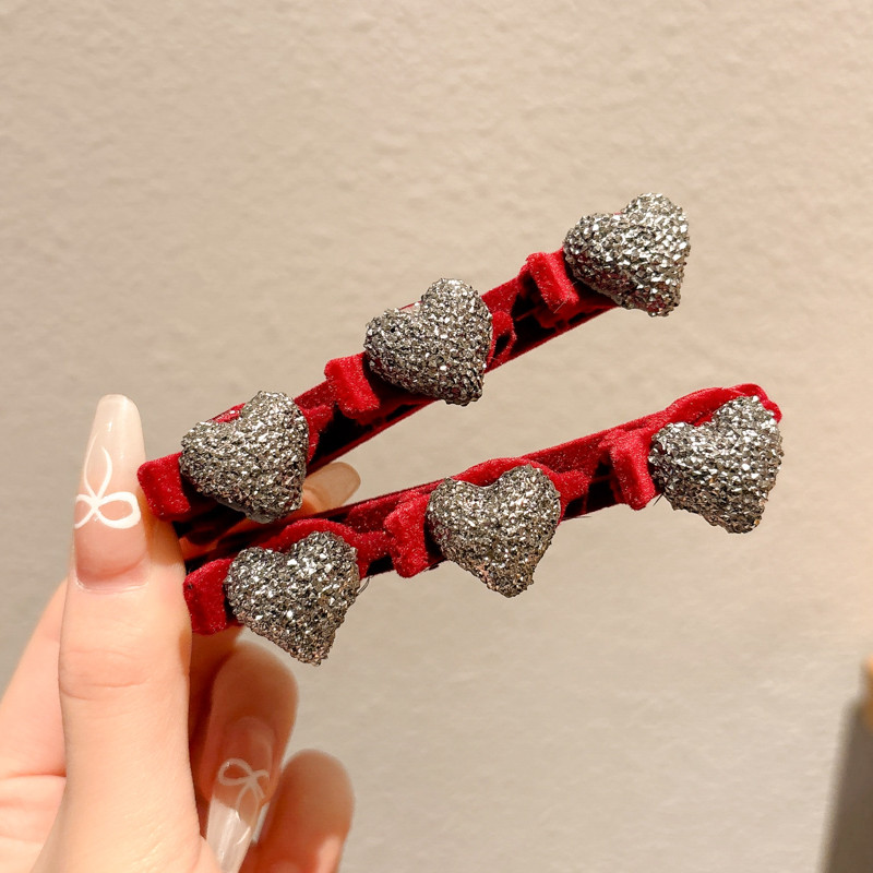 Korean Fashion Red Love Flocked Hairpin Hair Accessories for Women