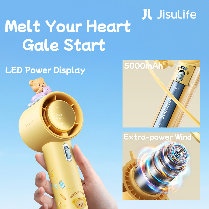 【JisuLife x Butterbear】Handheld Fan Pro1 5000mAh 100 Levels High Speed Wind Portable Fan with LED Display and Lightweight kipas mini Suitable for Home Outdoor Office Students