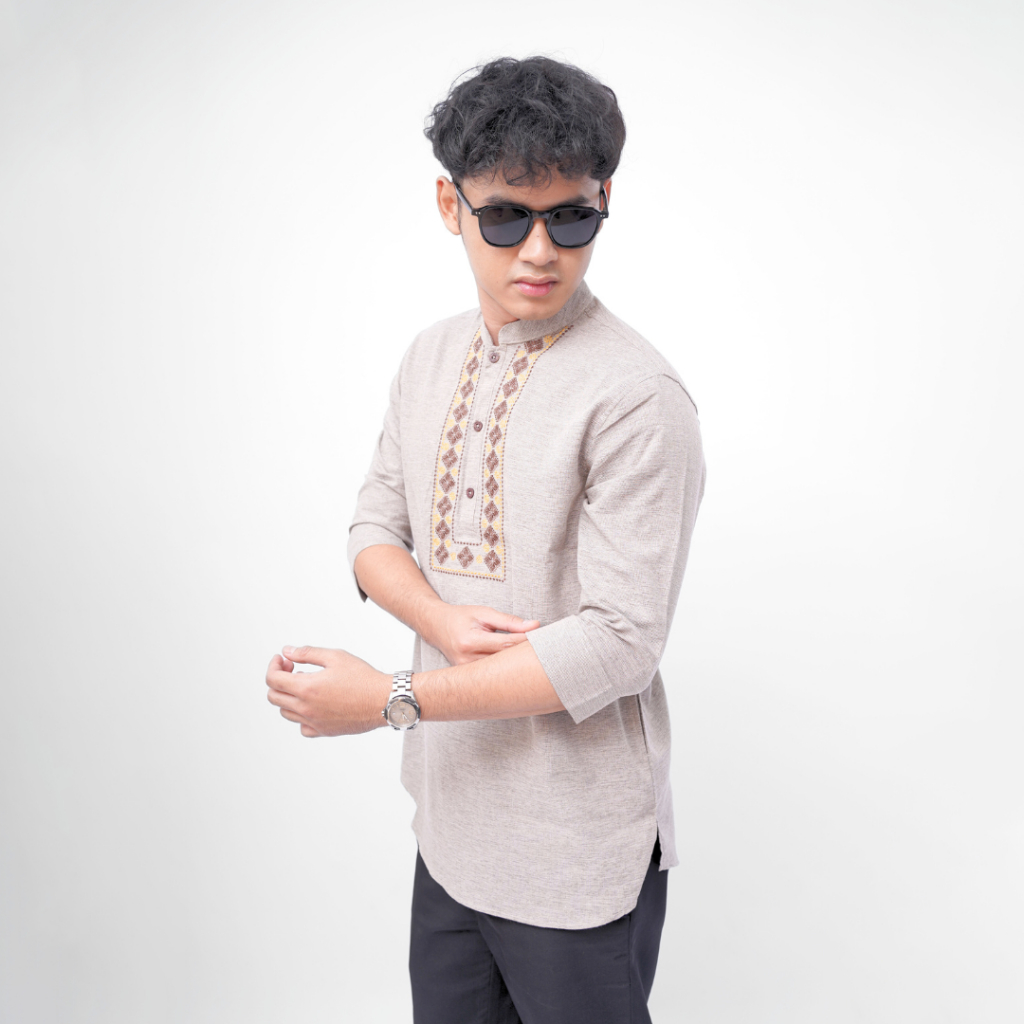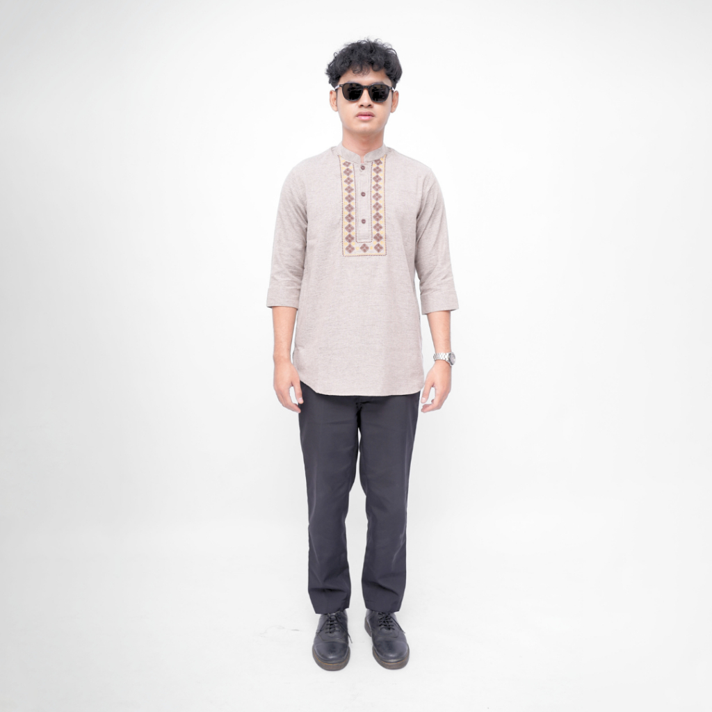 KEMEJA Ryusei Collar Kurta Shirt Tanakawa 2 Tone Light Brownkoko Kurta Lelaki Baju Kurta Lelaki Dewasa