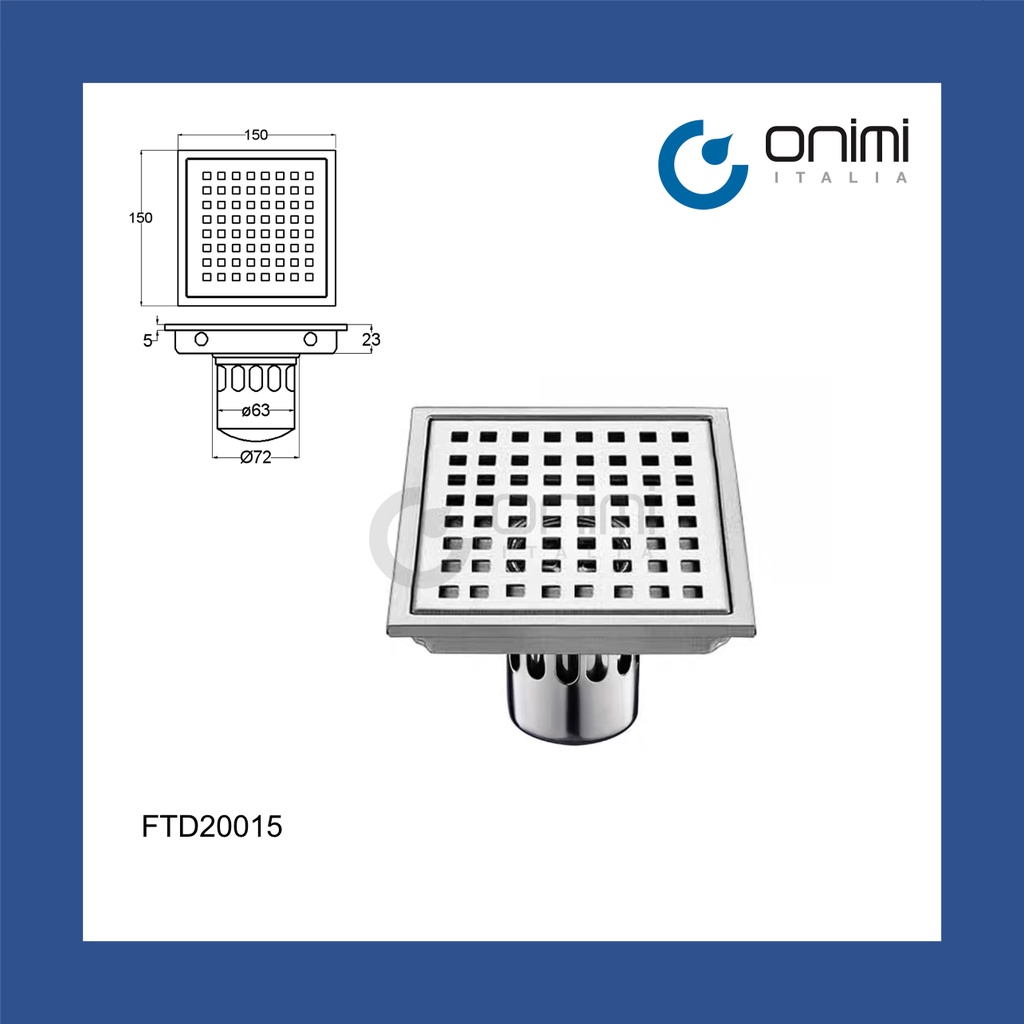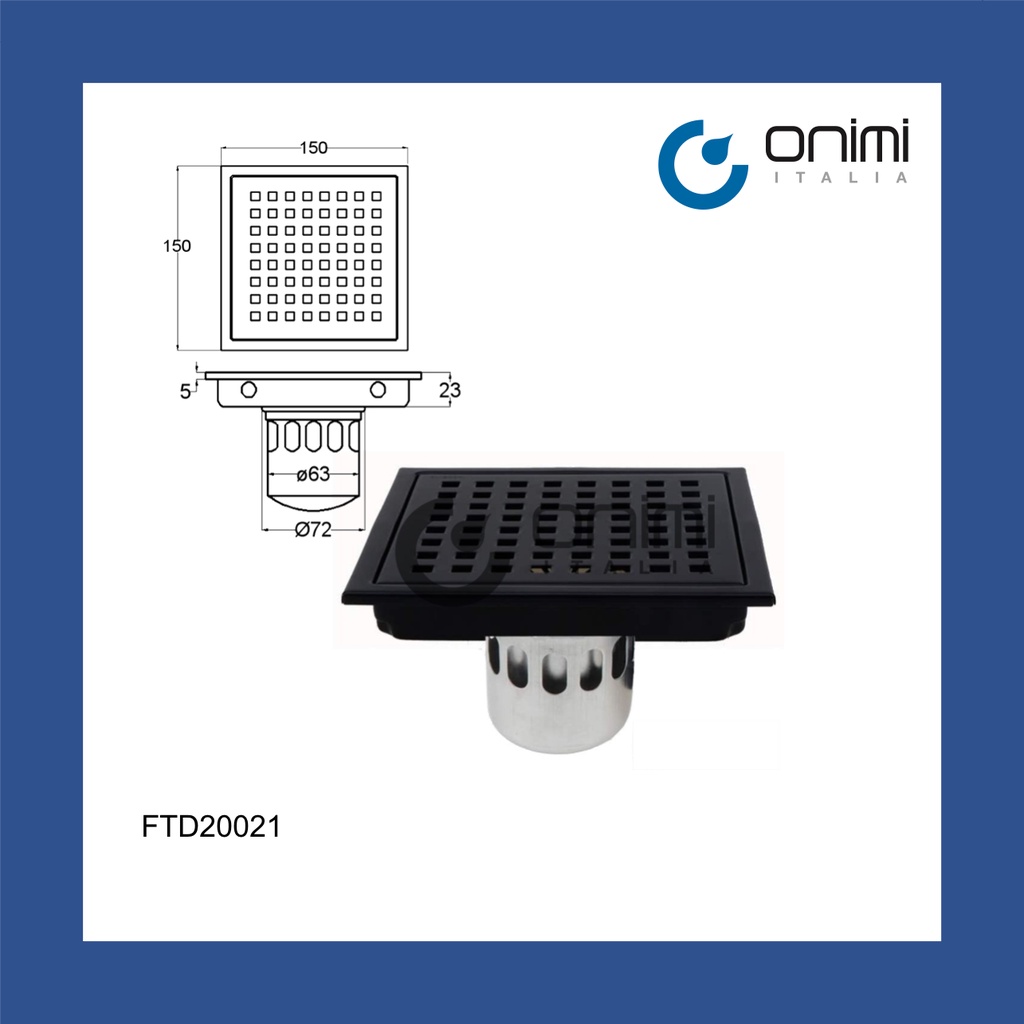 Onimi Italia - 6 inch Insert Tiles Floor Trap Stainless Steel (Anti Odour / Anti Insect) 15cm Black Floor grating -150mm