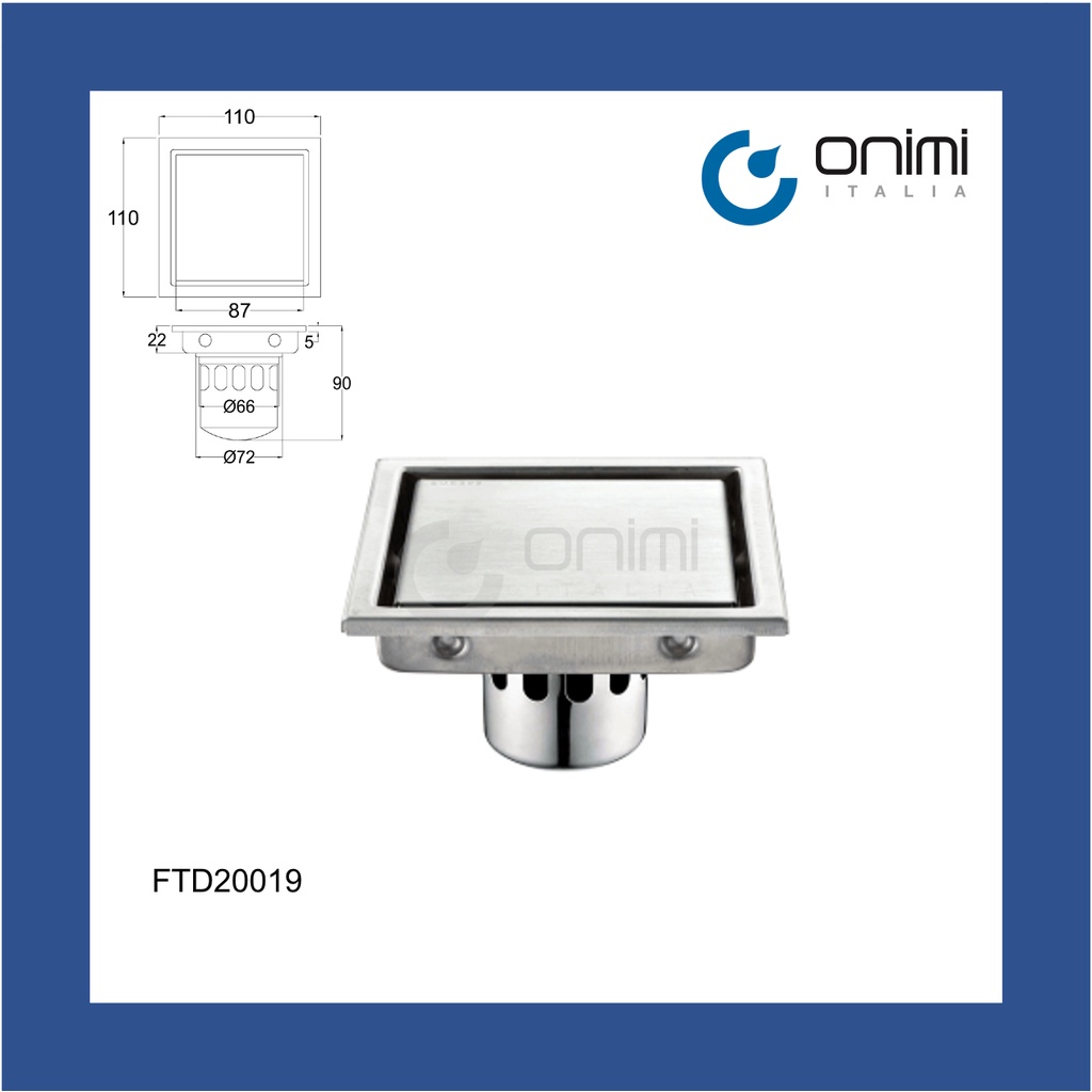 Onimi Italia - 4 inch Floor Trap with Big Discharge (110mm) Anti Odour / Anti Insect - Model FTD20019