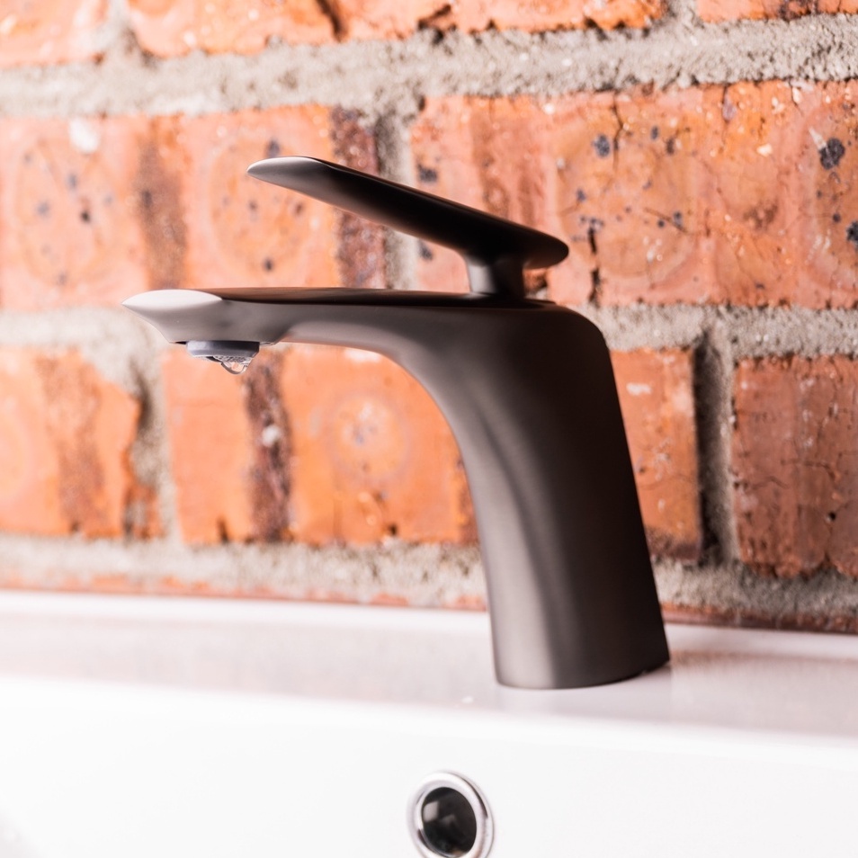 Onimi Italia - Metallic Grey Basin Mixer Tap / Gun Metal Basin Mixer Faucet / Hot and Cold Tap - Model BM1059