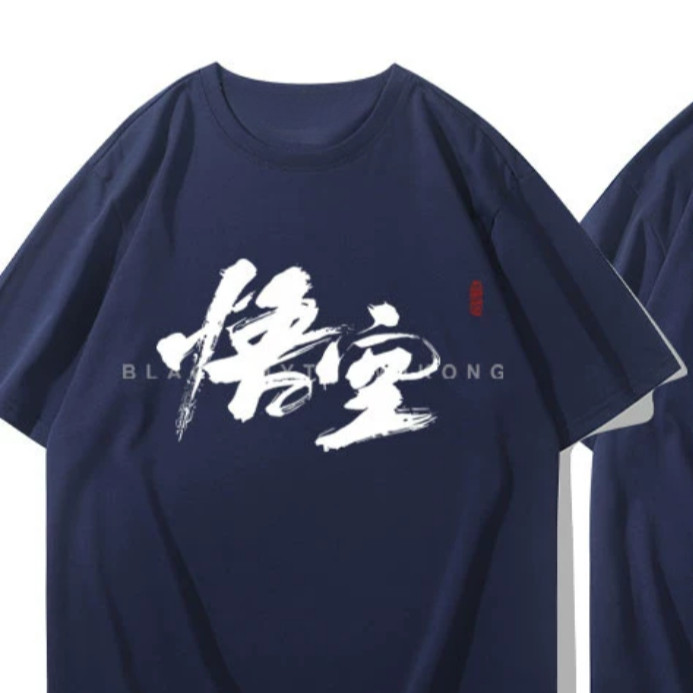 【Black Myth: WuKong】[Size M-8XL] Men's Tshirt Short Sleeve Tops Oversize Loose Cool Calligraphy Print Computer Game BLACK MYTH WUKONG Style Street Round Neck T-Shirt Unisex