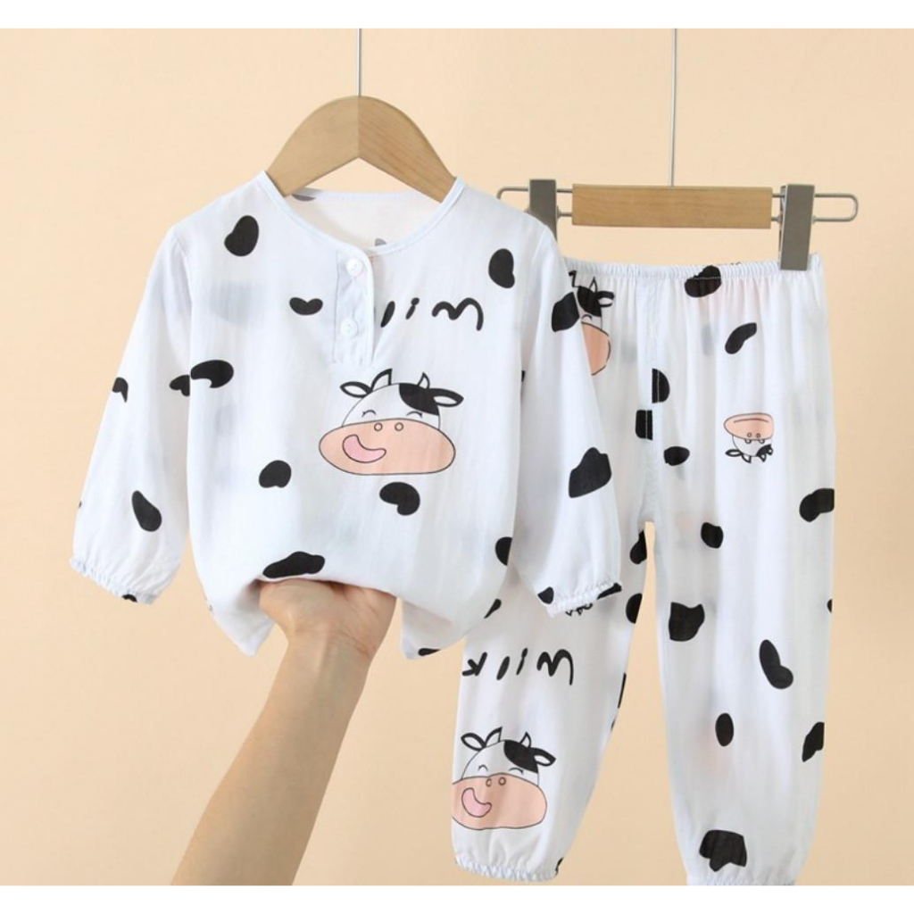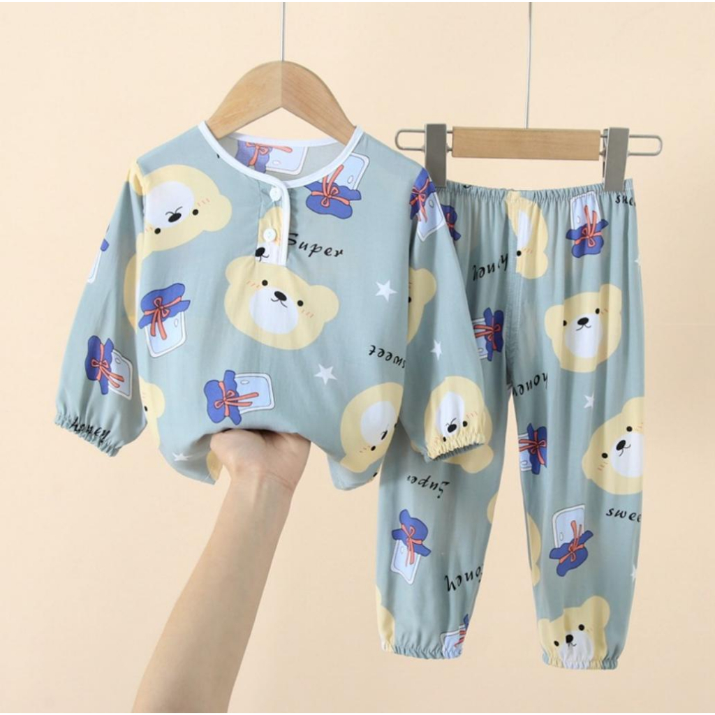 New New!Children Cotton Silk Pajamas Long-Sleeved Suit Boys Girls Baby Anti-Mosquito Air Conditioning