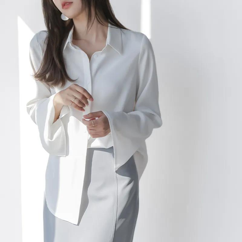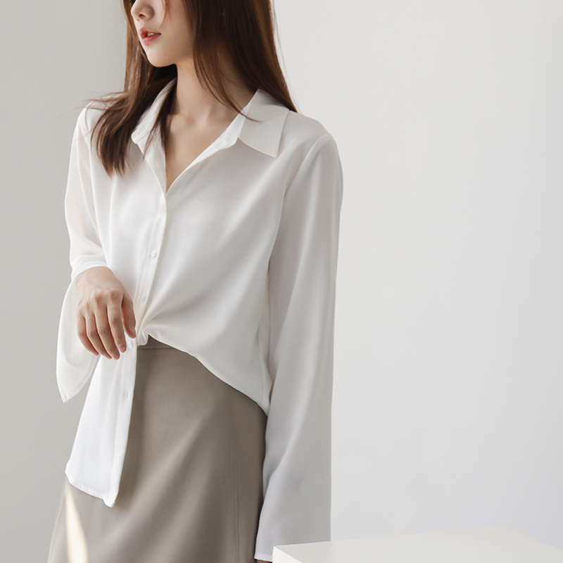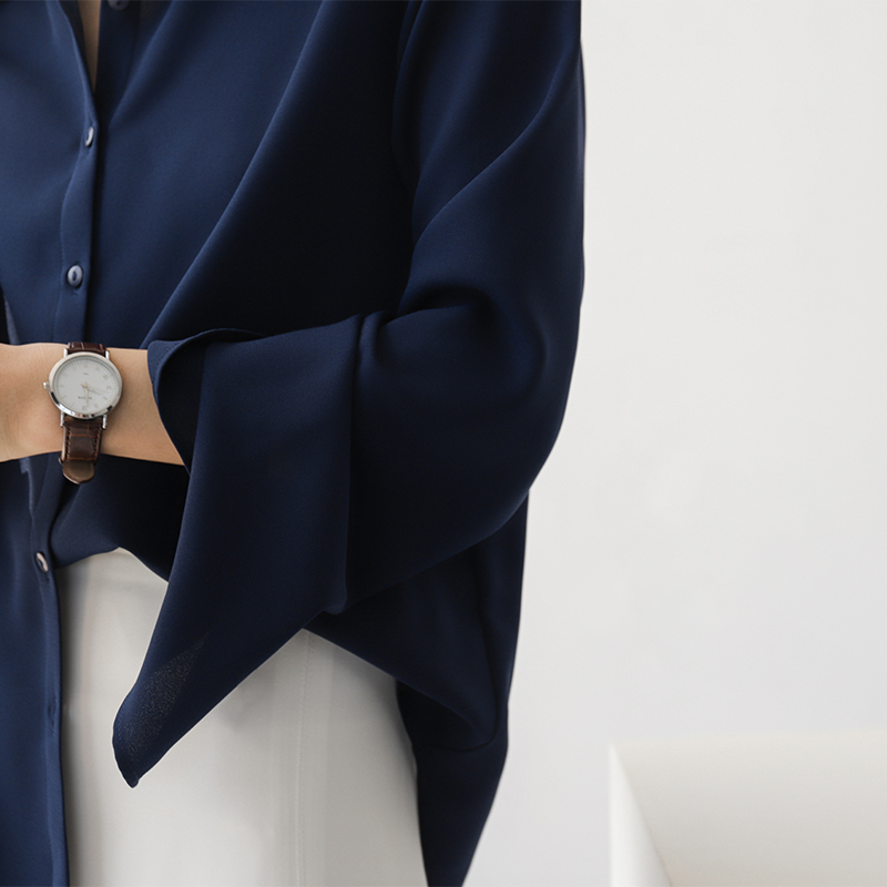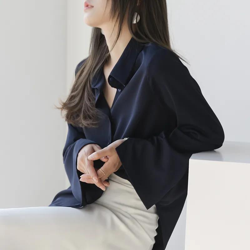 Recommend Tops Chiffon Long Sleeve Shirt Solid Casual Women Blouse baju wanita lengan panjang
