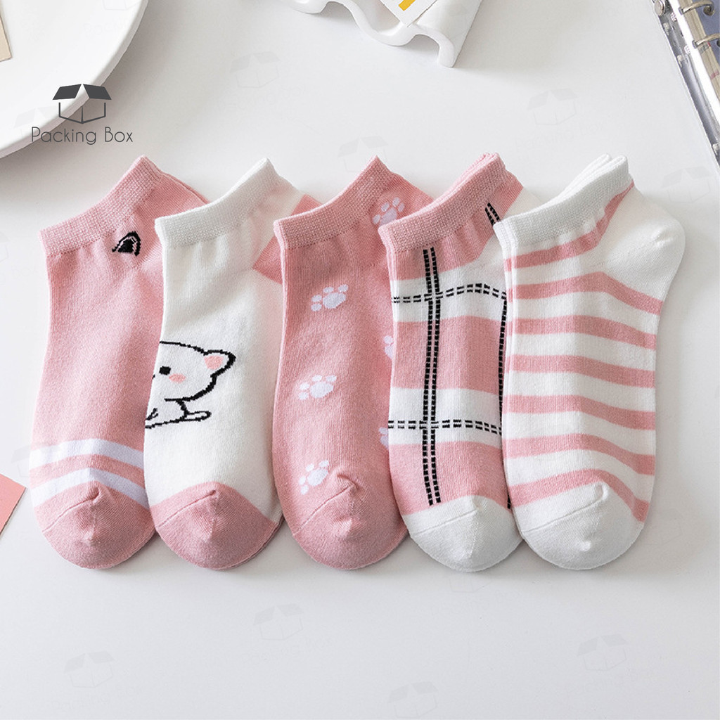 PKB «𝟱 𝗣𝗔𝗜𝗥𝗦» Cute Cartoon Unique Design Ankle Socks Girls Women Cotton Sock Sneakers Shoes Stoking 袜子
